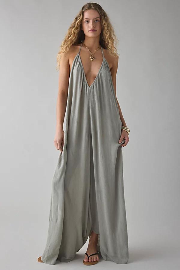 Breezy Out From Under jumpsuit in a lightweight, gauzy woven. Designed in a relaxed, drapey silhouette featuring a plunging v-neckline, halter straps and a low open-back. Find it only at Urban Outfitters. Features Out From Under Seas The Day backless halter gauze jumpsuit Wide leg jumpsuit Lightweight gauze woven Plunging v-neckline and halter straps Wide leg fit Low open back Relaxed, drape fit Full length Adjustable halter straps Easy pull-on style UO exclusive Content + Care 100% Rayon Machin
