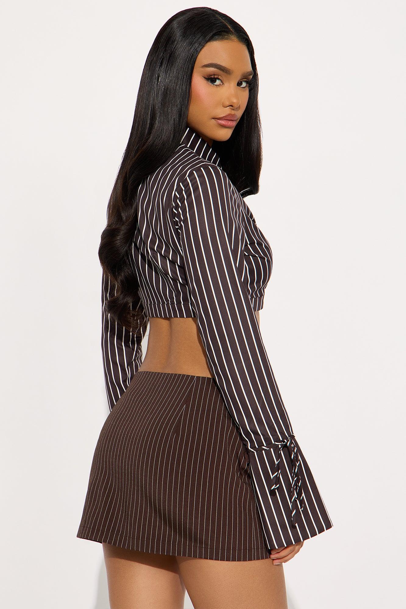 Out Of Control Cropped Pinstripe Shirt - Chocolate/Combo Female
