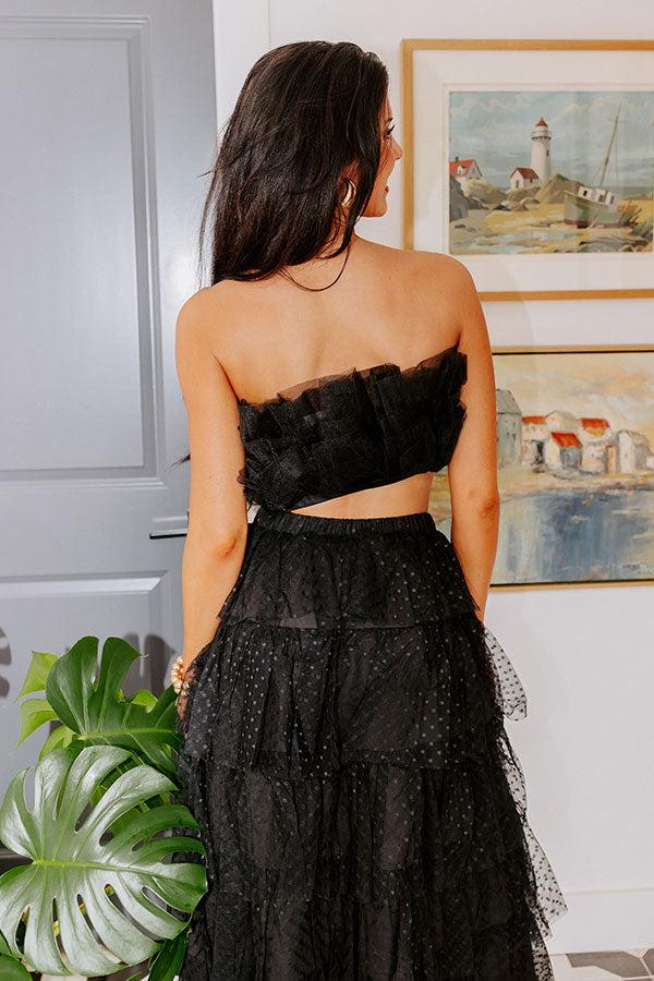 Get ready for a fun night out in our trendy black 'Out Past Midnight' top featuring ruffled tulle material, a strapless fit, a zip closure on the side, and a bandeau silhouette with an elastic straight cropped hemline! Measurements S : Bust 28", Length 8.5", Waist 26". M : Bust 30", Length 9", Waist 28". L : Bust 32", Length 9.5", Waist 30".