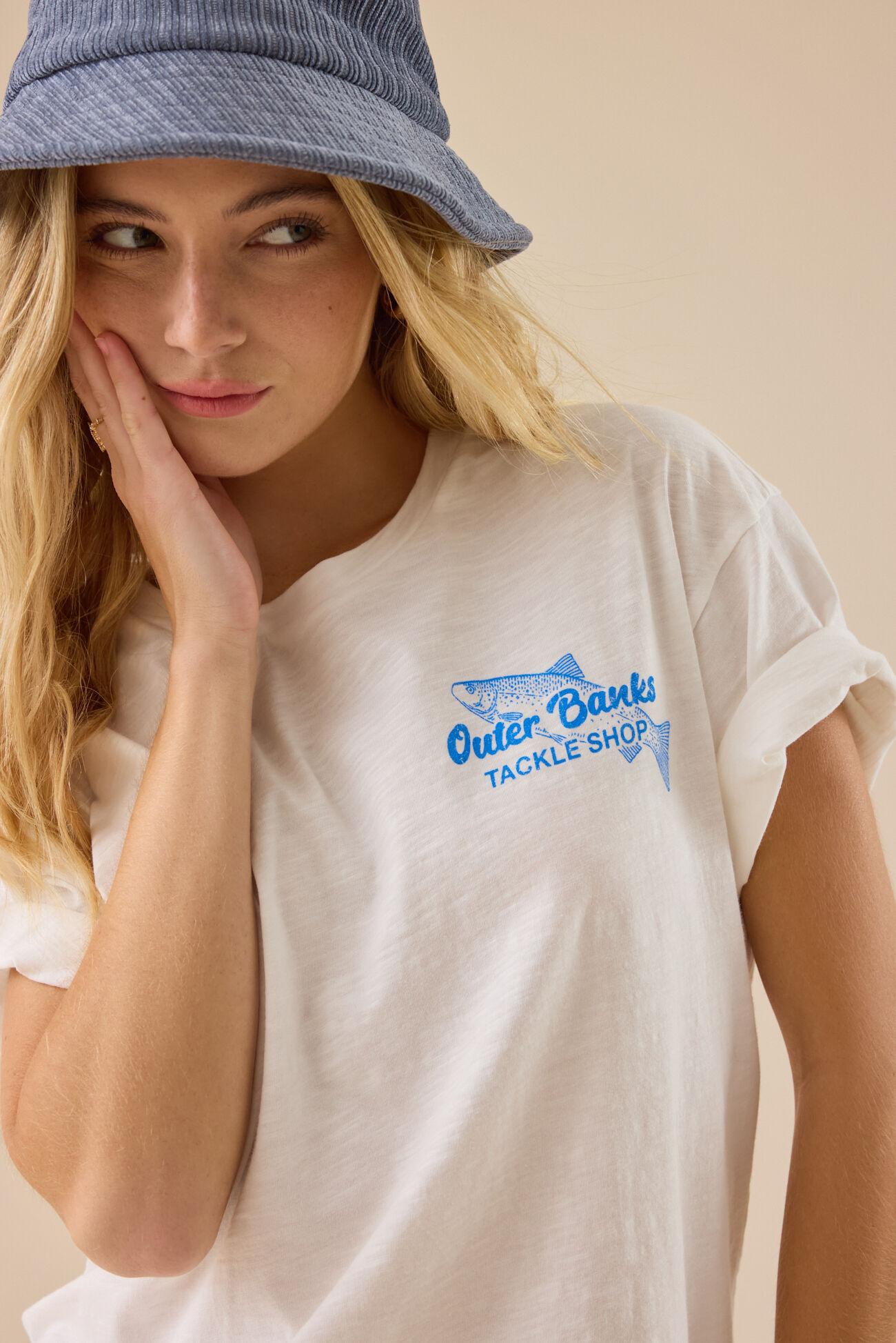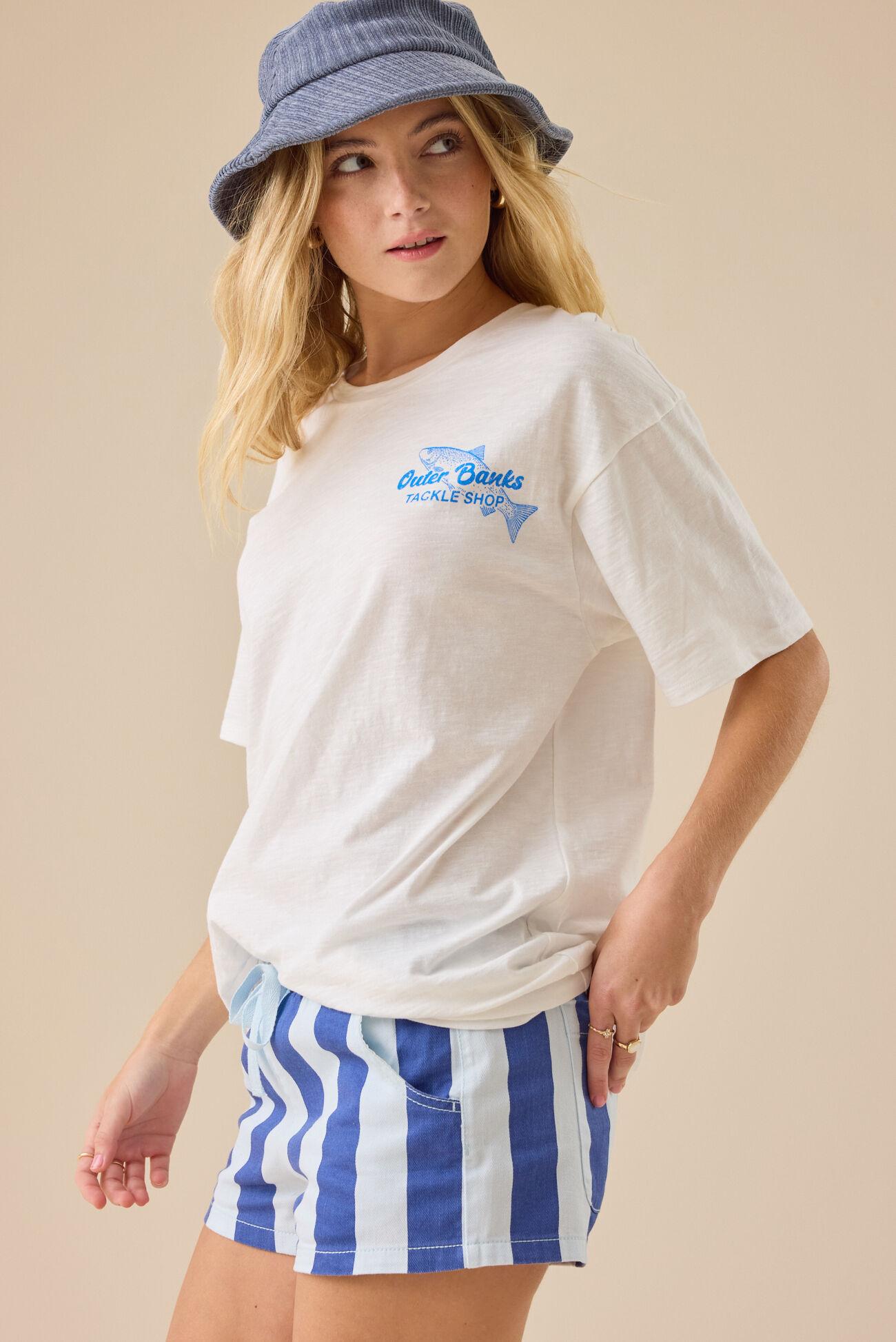 Bring a dose of laid-back, coastal charm to your closet with this oversized tee. With its vintage-inspired graphic and ultra-relaxed fit, it’s made for slow mornings, salty breezes, and beach-town adventures.