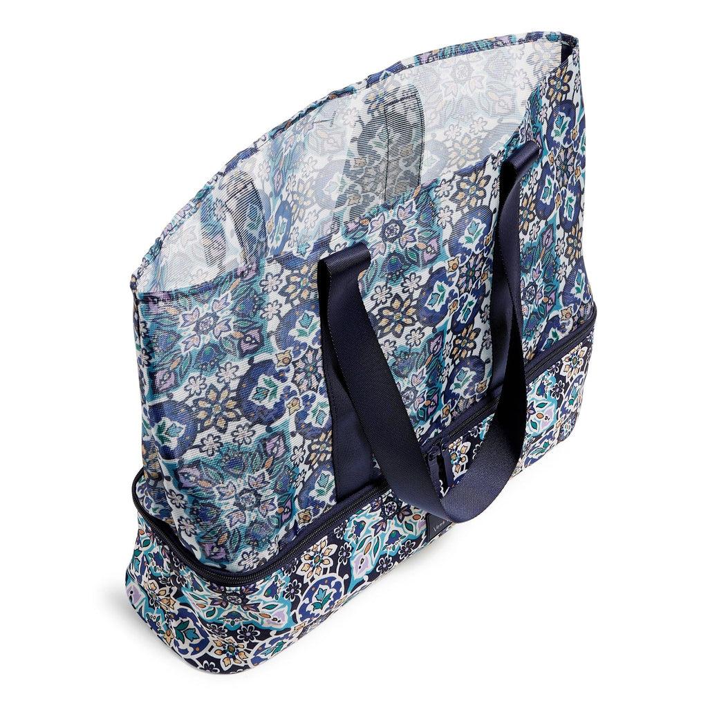 This tote is perfect for beach or pool days. Outlet Exclusive Mesh top with Lighten Up base Two compartments.