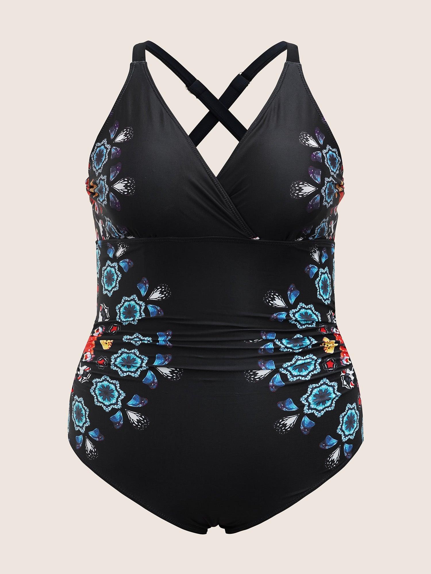 Shop Overlap Collar Boho Print Gathered One Piece Swimsuit now and redefine your style with confidence at BloomChic. Tailored for mid and plus-size women. This trendy Swimwear Women, sizes 10-30. Season:Summer;Color:Black;Style:Beach;Cup Type:Removable cups;Waist Design:High Rise;Neckline:Overlap Collar;Sleeve Type:Sleeveless;Prints:Gradient dyeing;Details:Gathered;Pocket:No-pocket;Belt:No-belt;Chest pad:Removable Padding;Lining:Lining;Closure Type:Non