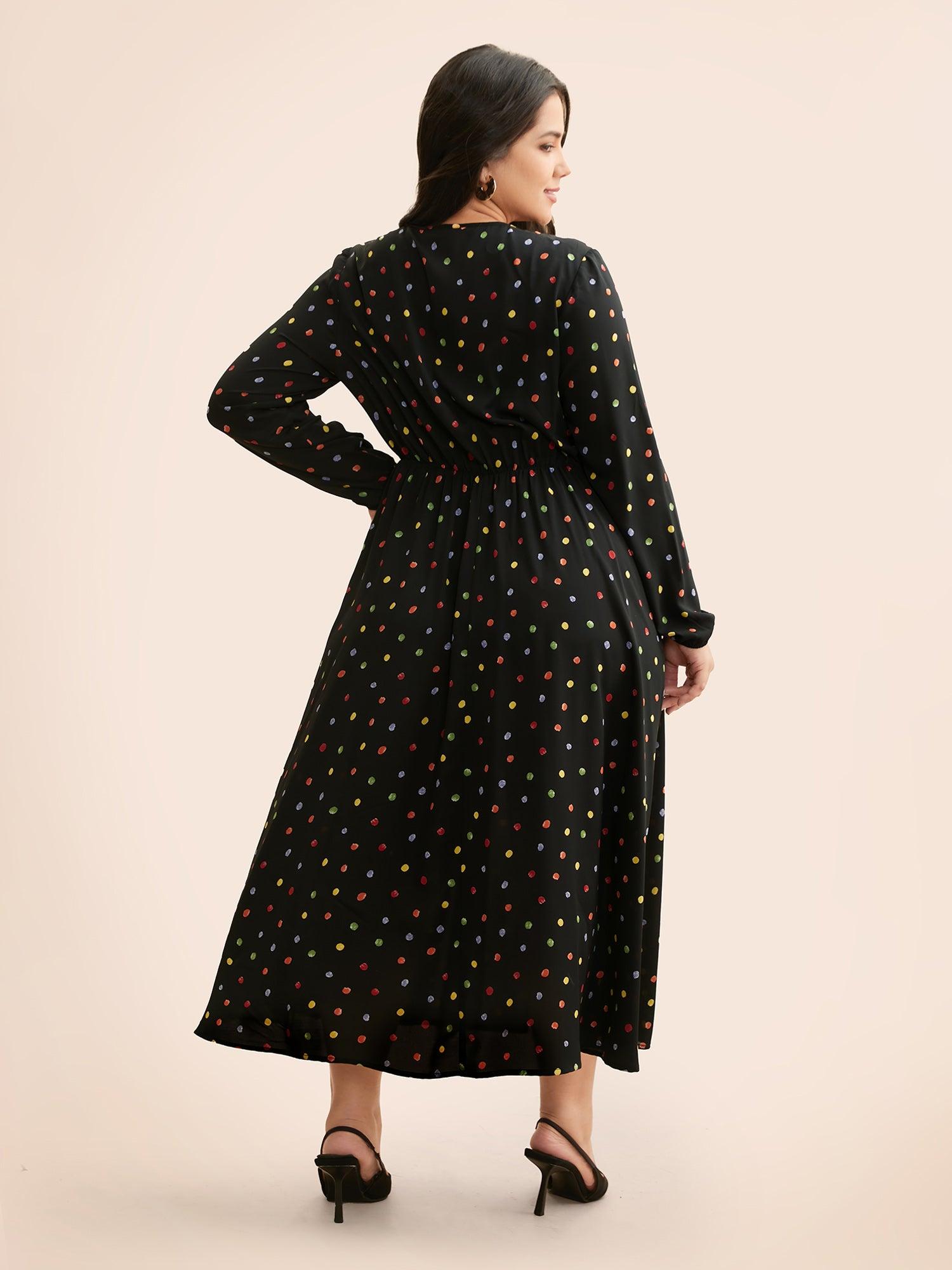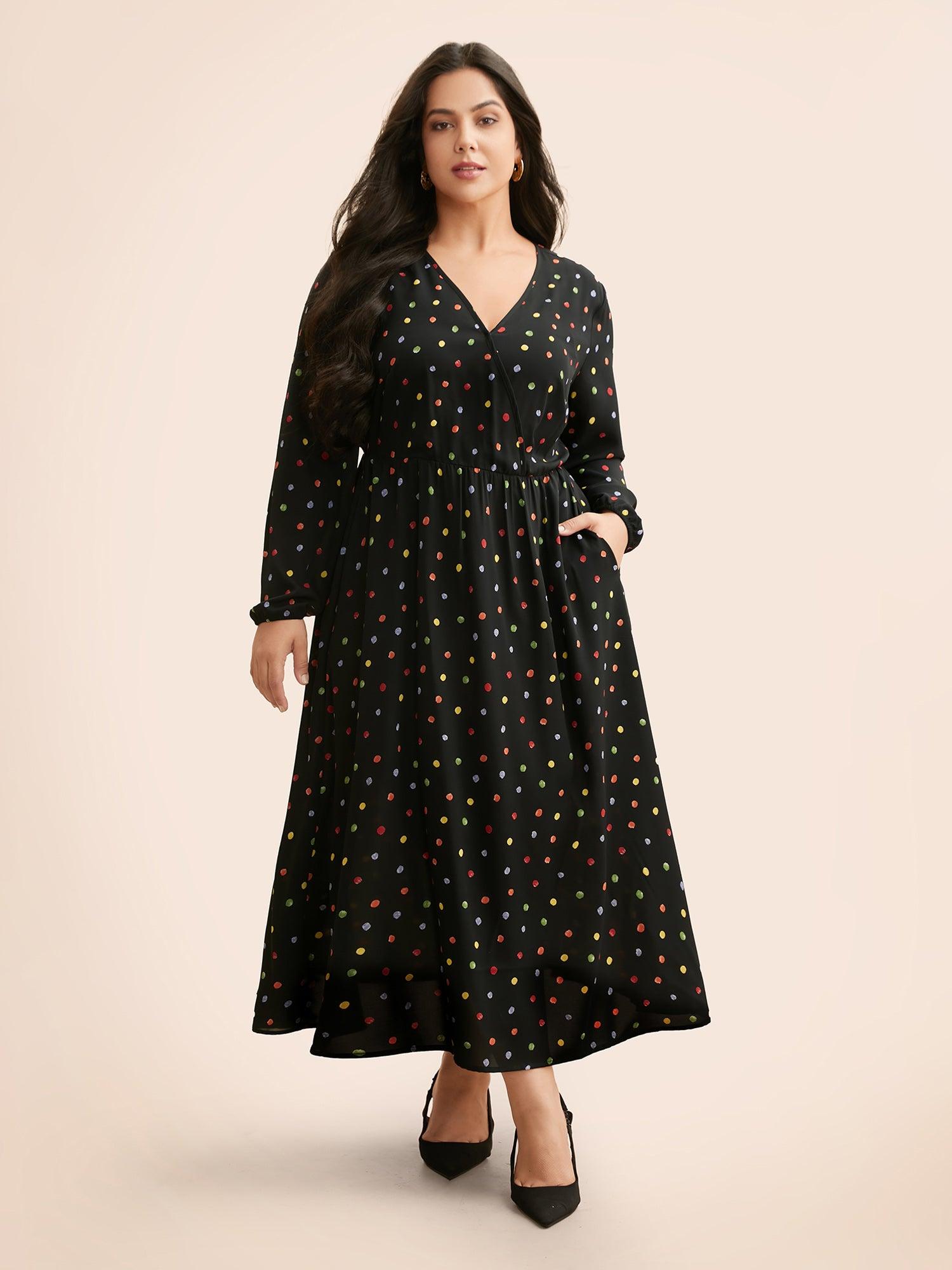 Shop Overlap Collar Color Polka Dot Dress now and redefine your style with confidence at BloomChic. Tailored for mid and plus-size women. This trendy Dress, sizes 10-30. You can never go wrong with BloomChic Dresses. Season:Winter;Color:Black;Style:Elegant;Neckline:Overlap Collar;Sleeve Type:Lantern Sleeve;Prints:Polka dots;Details:Gathered;Pocket:Side seam pocket;Belt:No-belt;Closure Type:Non