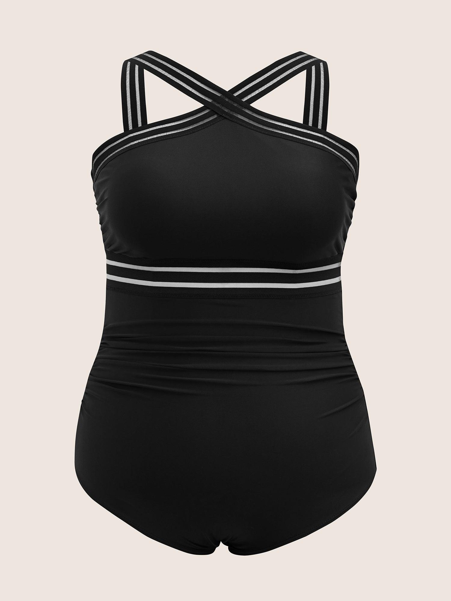 Shop Overlap Collar Patchwork Mesh Gathered One Piece Swimsuit now and redefine your style with confidence at BloomChic. Tailored for mid and plus-size women. This trendy Swimwear Women, sizes 10-30. Season:Summer;Color:Black;Style:Beach;Cup Type:Removable cups;Waist Design:High Rise;Neckline:Overlap Collar;Sleeve Type:Sleeveless;Prints:Non;Details:Woven ribbon&lace trim, See through, Gathered;Pocket:No-pocket;Belt:No-belt;Chest pad:Removable Padding;Lining:Lining;Closure Type:Non