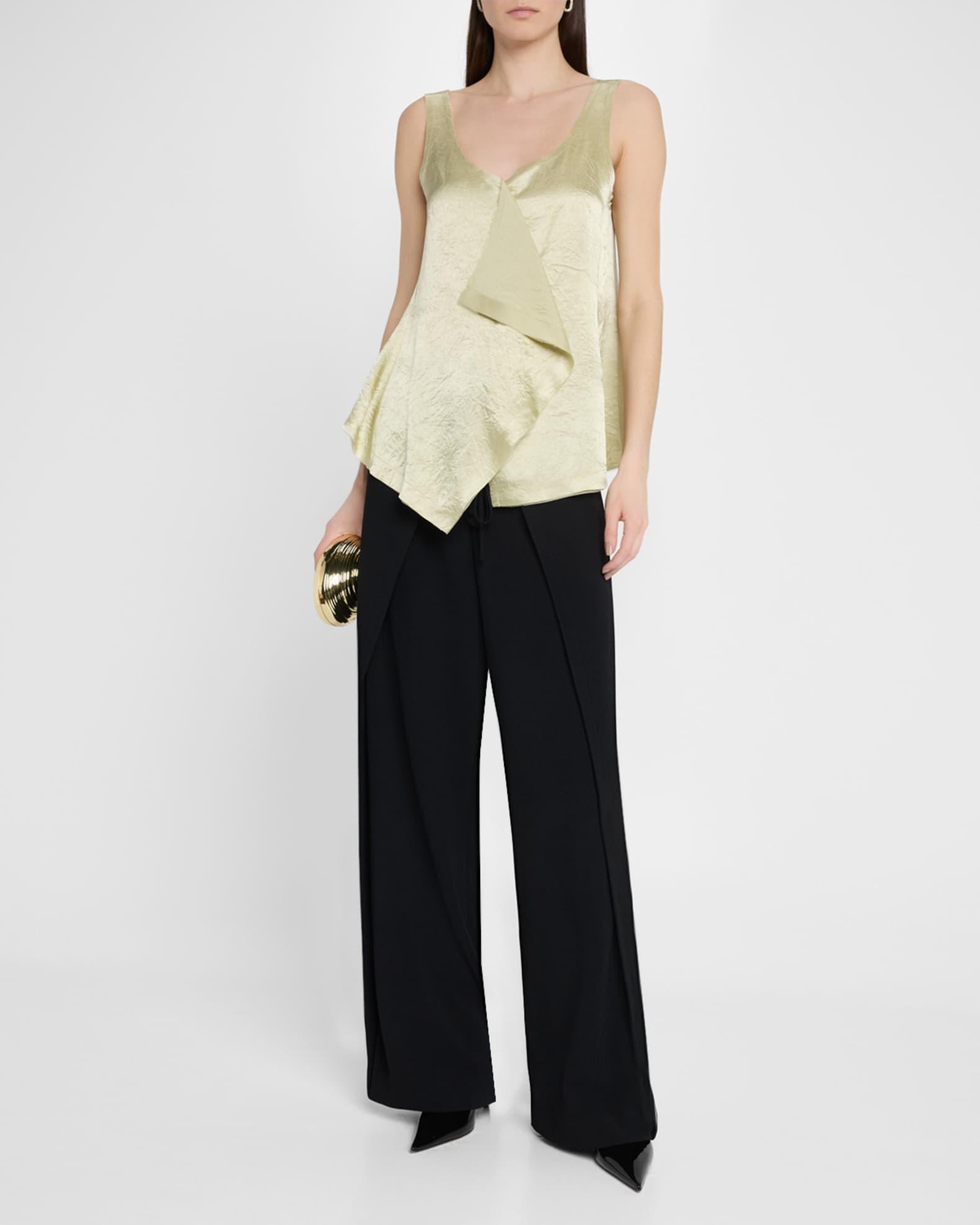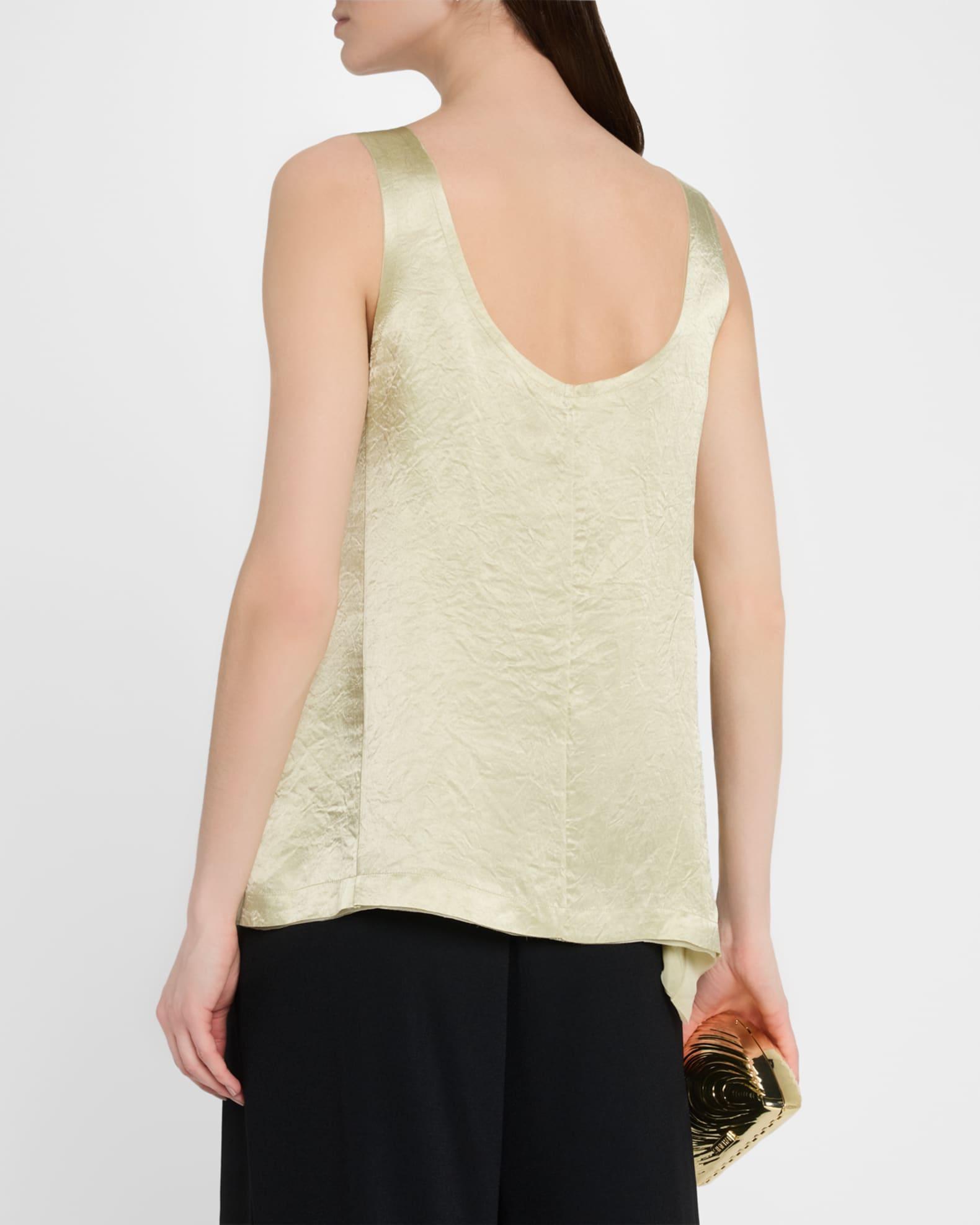 Overlap Crinkle Satin Tank Top