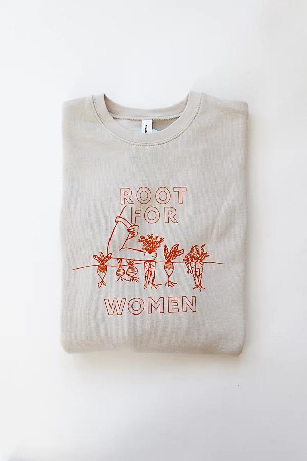 Empowering and cozy crewneck suitable for any feminist foodie. It is a relaxed, unisex fit and it comes in a natural color with dark orange graphic, a brick red color with white graphic or a sage green color with light pink graphic. **Care/Import** * 52% cotton, 48% polyester fleece * Machine wash on warm with like colors and tumble dry on low. * Made in the USA **Dimensions** * Measurements for a size Medium: fits 38 - 41 chest across Overseasoned Root for Women Crewneck at Free People in Natural, Size: L