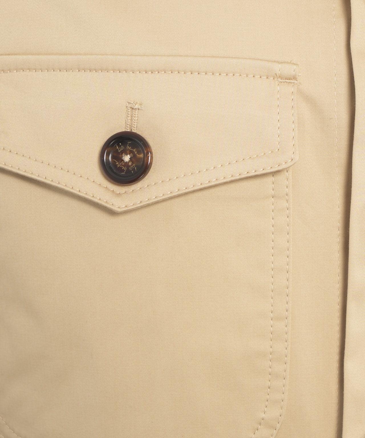 Mandarin collarButton closureLogo detailsTop stitching detailsLogo patchOne internal pocketLong sleevesChest pocketsButtoned flap pocketStretch