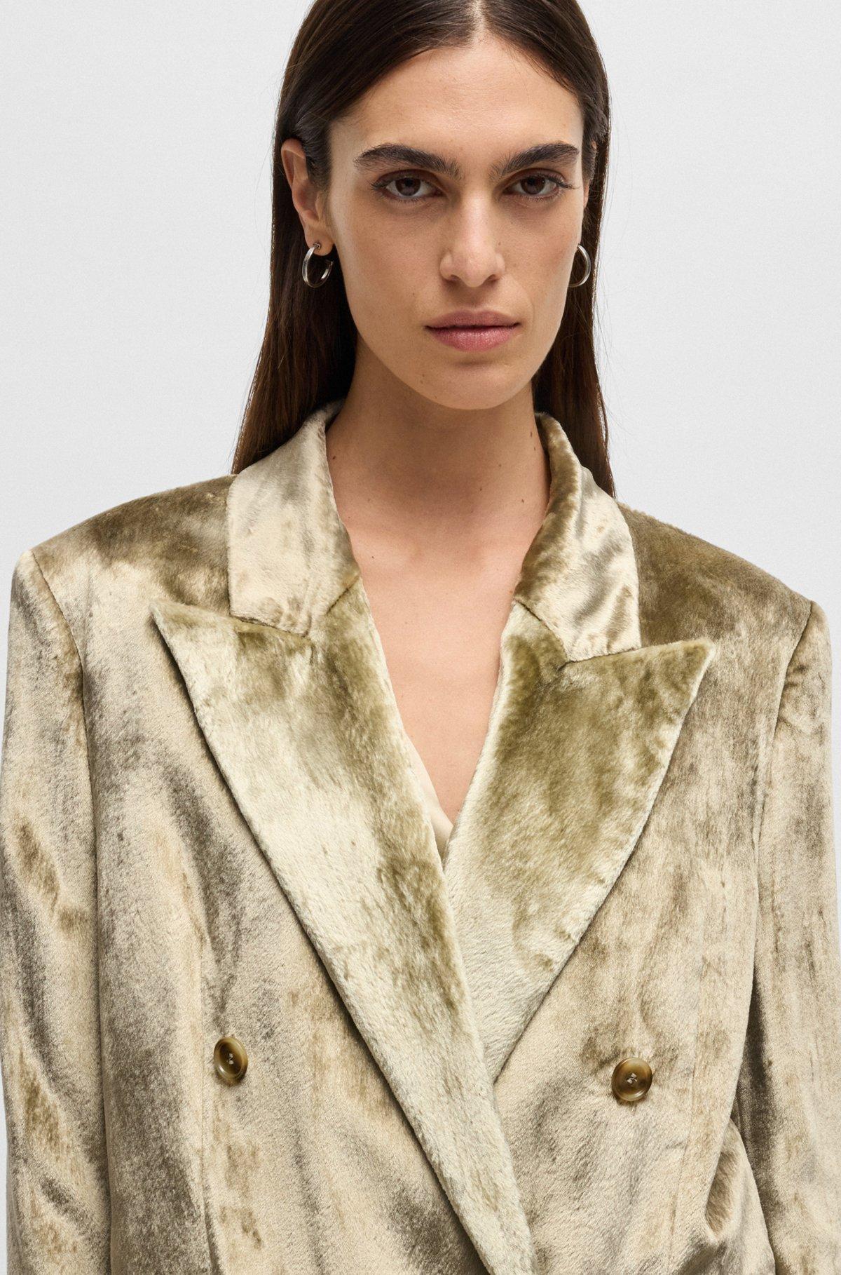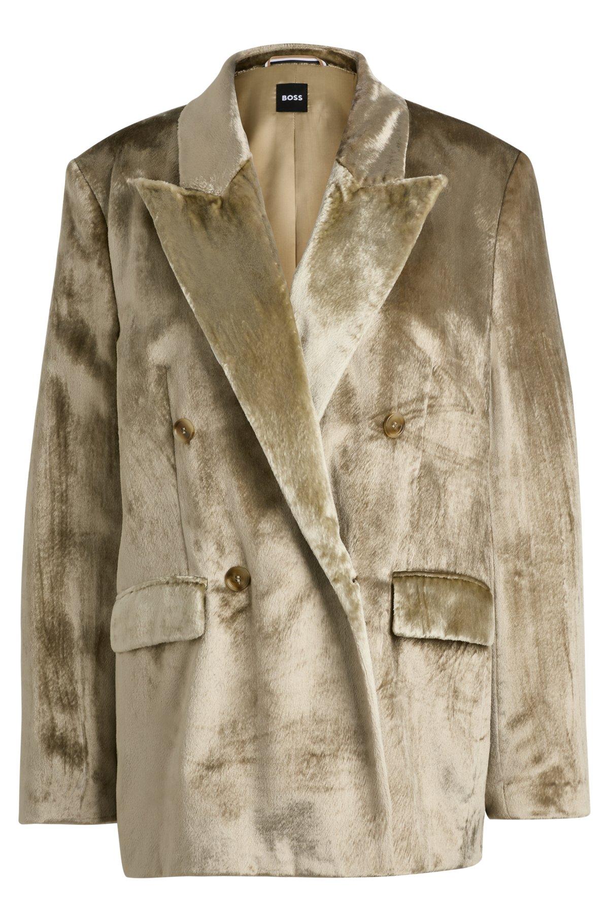 Oversize-fit double-breasted jacket in plush velvet - Light Beige Tailored Jackets from BOSS for Women for in the official HUGO BOSS Online Store free shipping