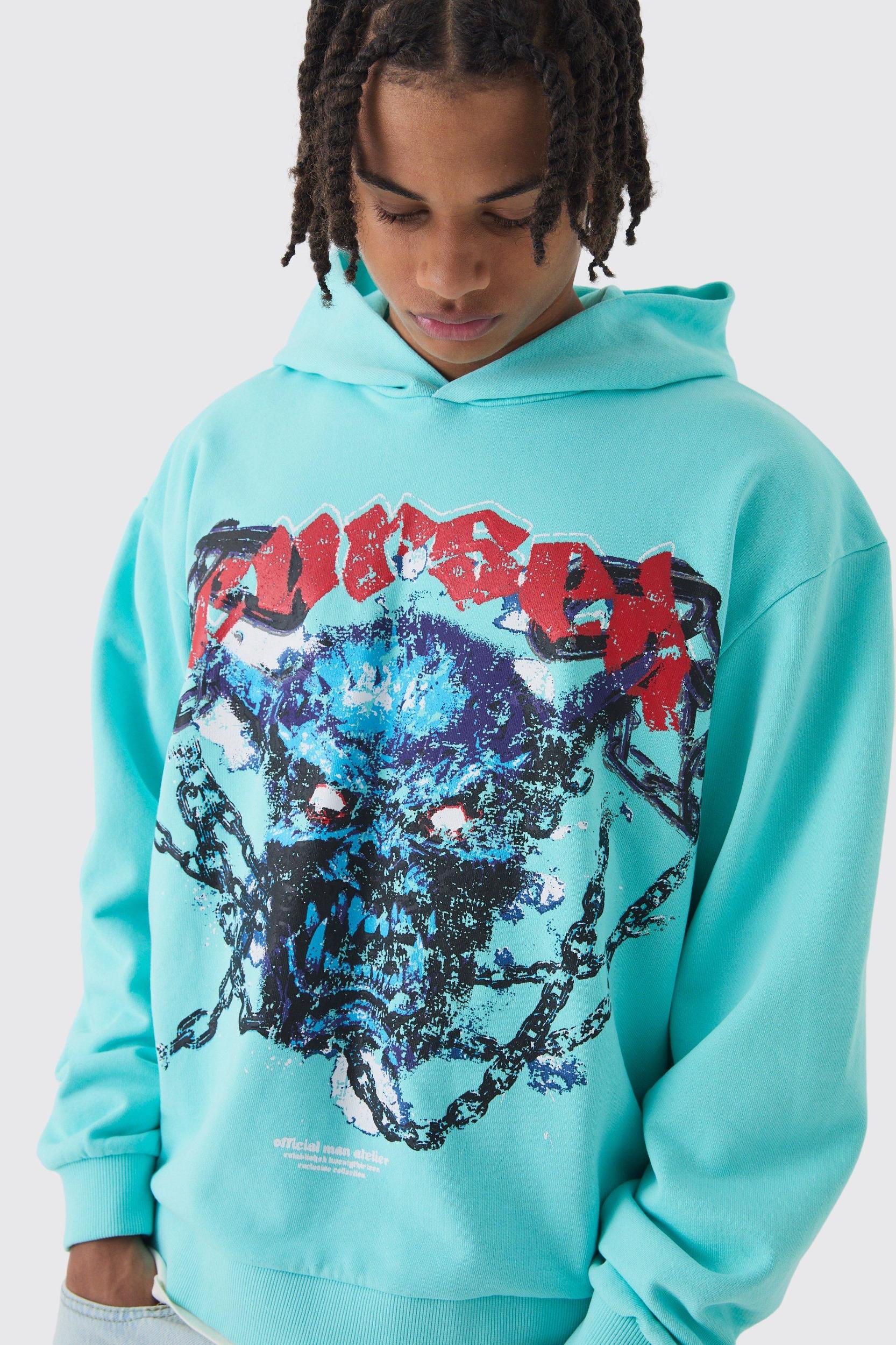 Layer up with an oversized hoodie. Who says you have to choose between style and comfort? With clean lines and plenty of room for extra layers, an oversized hoodie will finish off your 'fit and keep you warm any time of year. Pair a bold print with black cargos and trainers for an effortlessly chill street look, or colour match your hoodie with comfy joggers to hit the gym in style. Mix and match your favourite statement tees with two or three zip up hoodies in block colours and you'll have endless combos to last you all season. changeStyle: Printed HoodieDesign: GraphicFabric: LoopbackLength: CroppedNeckline: HoodedSleeve Length: Long Sleeve