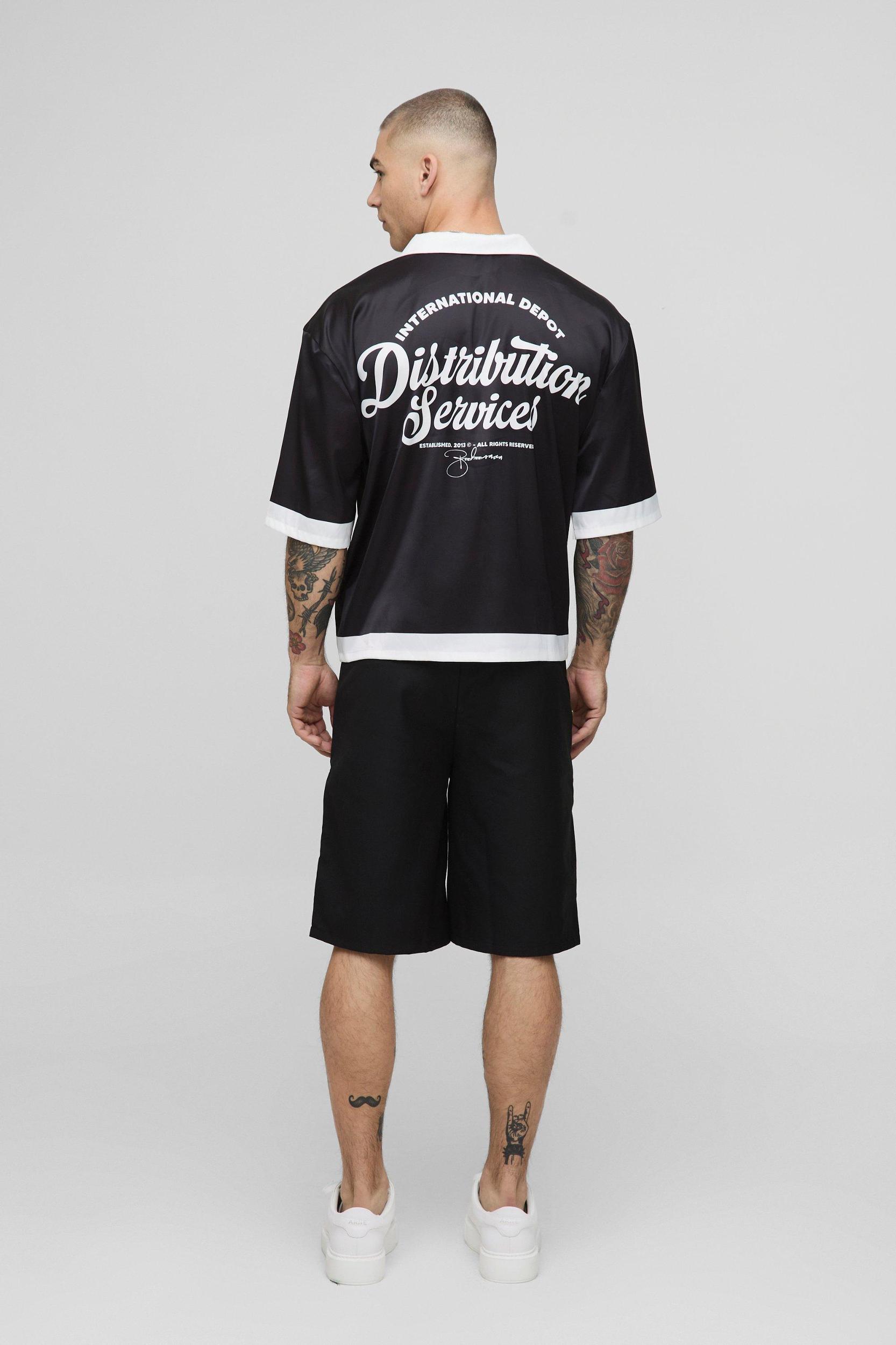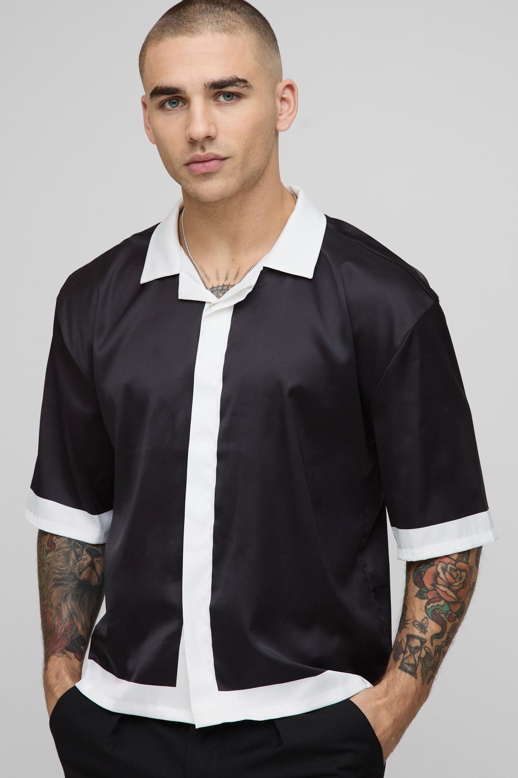 Mens Black Oversized Boxy Border Printed Satin Shirt - Introduce some subtle dapperness into your day-to-day lineup with a shirt. Youll be surprised at how easy it is to throw together a sophisticated ensemble with a plain shirt from our extensive range. If you want to look sharp by keeping it simple, pair a checked shirt with a blazer and skinny jeans. Finish off with Chelsea boots for an outfit that delivers dapperness from the office to the bar. If you are looking for the ultimate summer outfit, our selection of printed shirts will make sure youll get noticed.