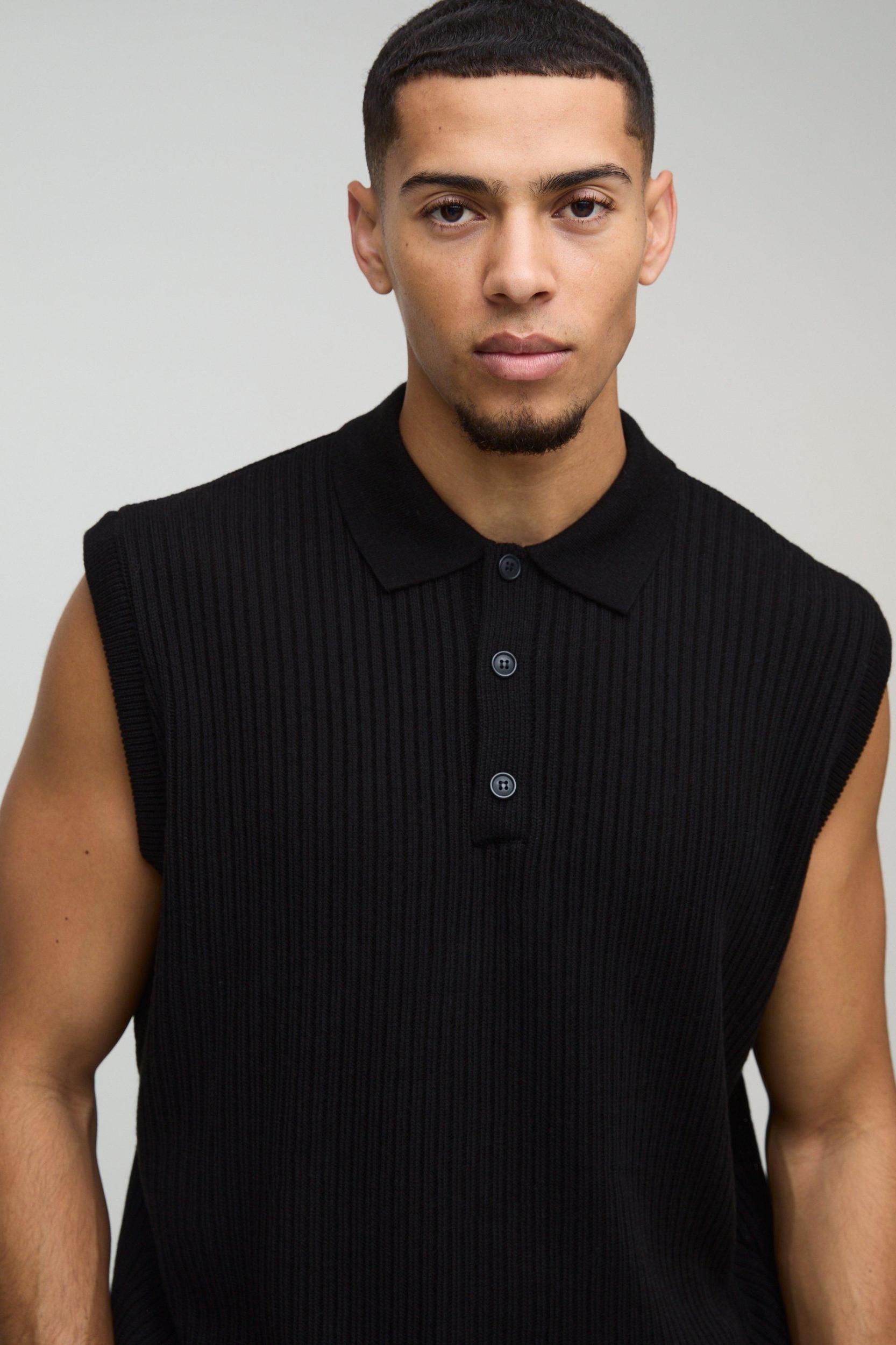 Oversized Boxy Collared Knitted Undershirt | boohooMAN USA