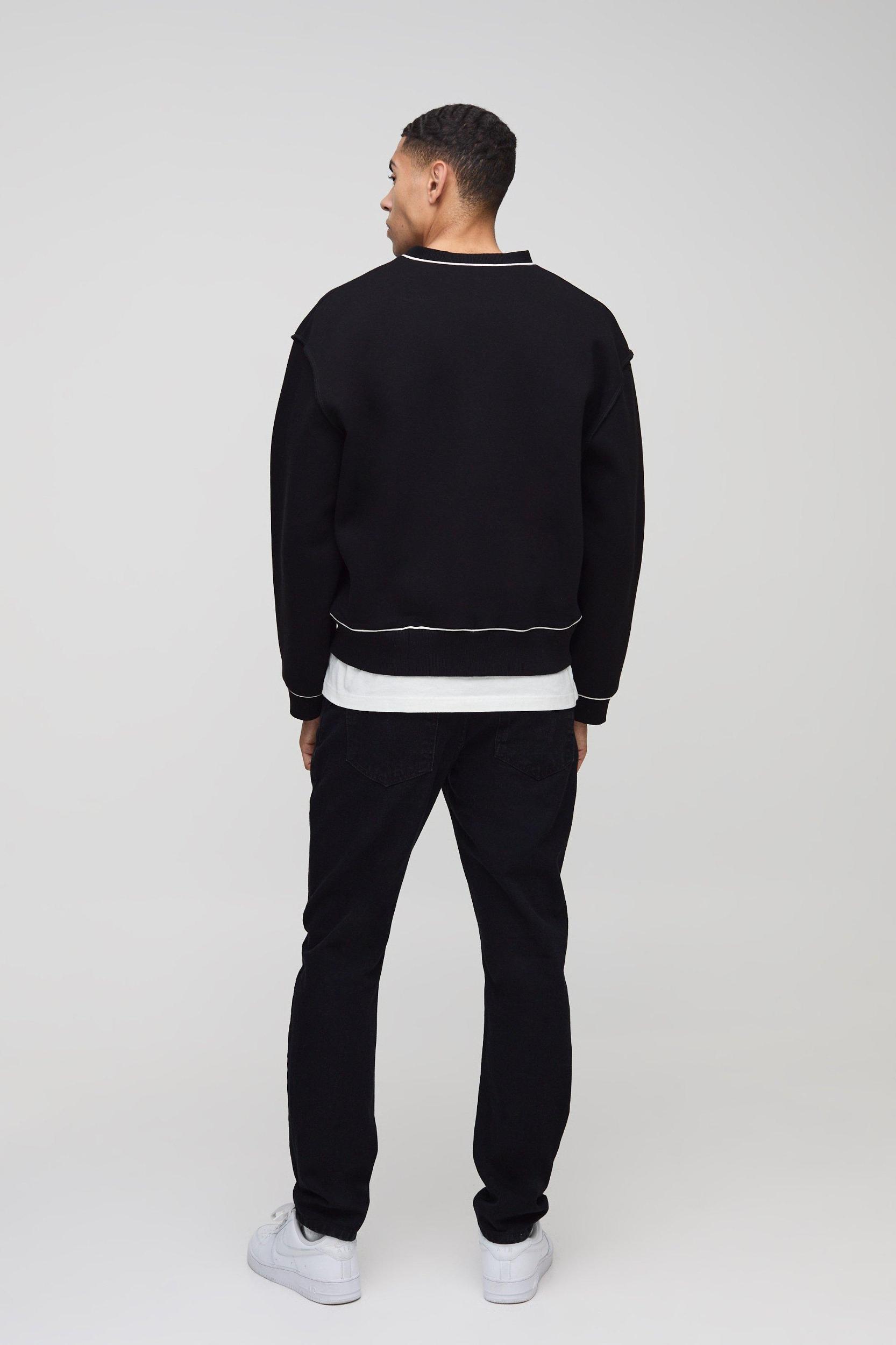 Oversized Boxy Contrast Piping Cardigan | boohooMAN USA