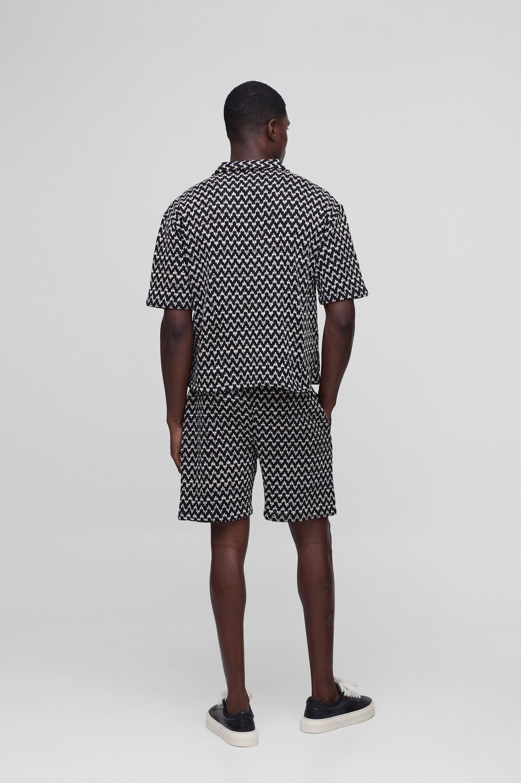 Oversized Boxy Crochet Shirt & Relaxed Short Set | boohooMAN USA