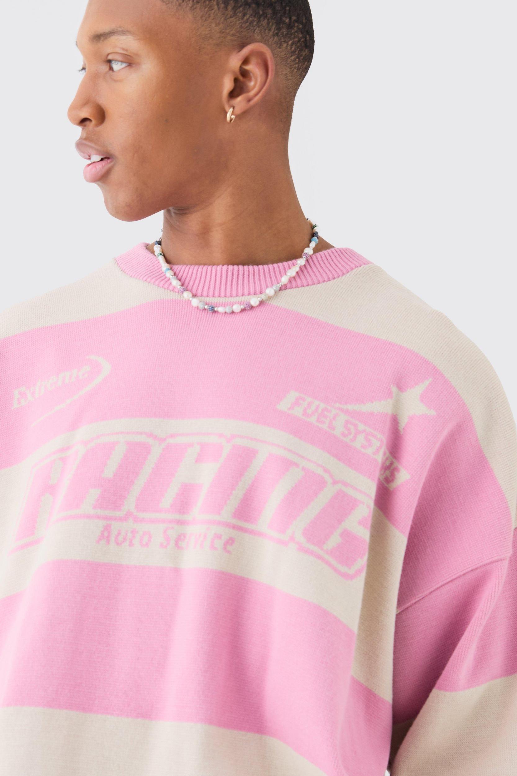 Mens Blue Oversized Boxy Drop Shoulder Moto Knit Jumper - Layer up and look good in a jumper from the boohooMAN collection. Fashions all about the finishing touches and jumpers and cardigans are the easiest way to fix up your look. Keep it cool in cable knits, work it in waffle or do the finer details in a fisherman. Show off your style in a sharp shirt and shawl cardigan combo, finish off with brogues and youll be up there with fashions finest.Style: JumperDesign: JacquardFabric: AcrylicLength: CroppedNeckline: CrewSleeve Length: Long Sleeve