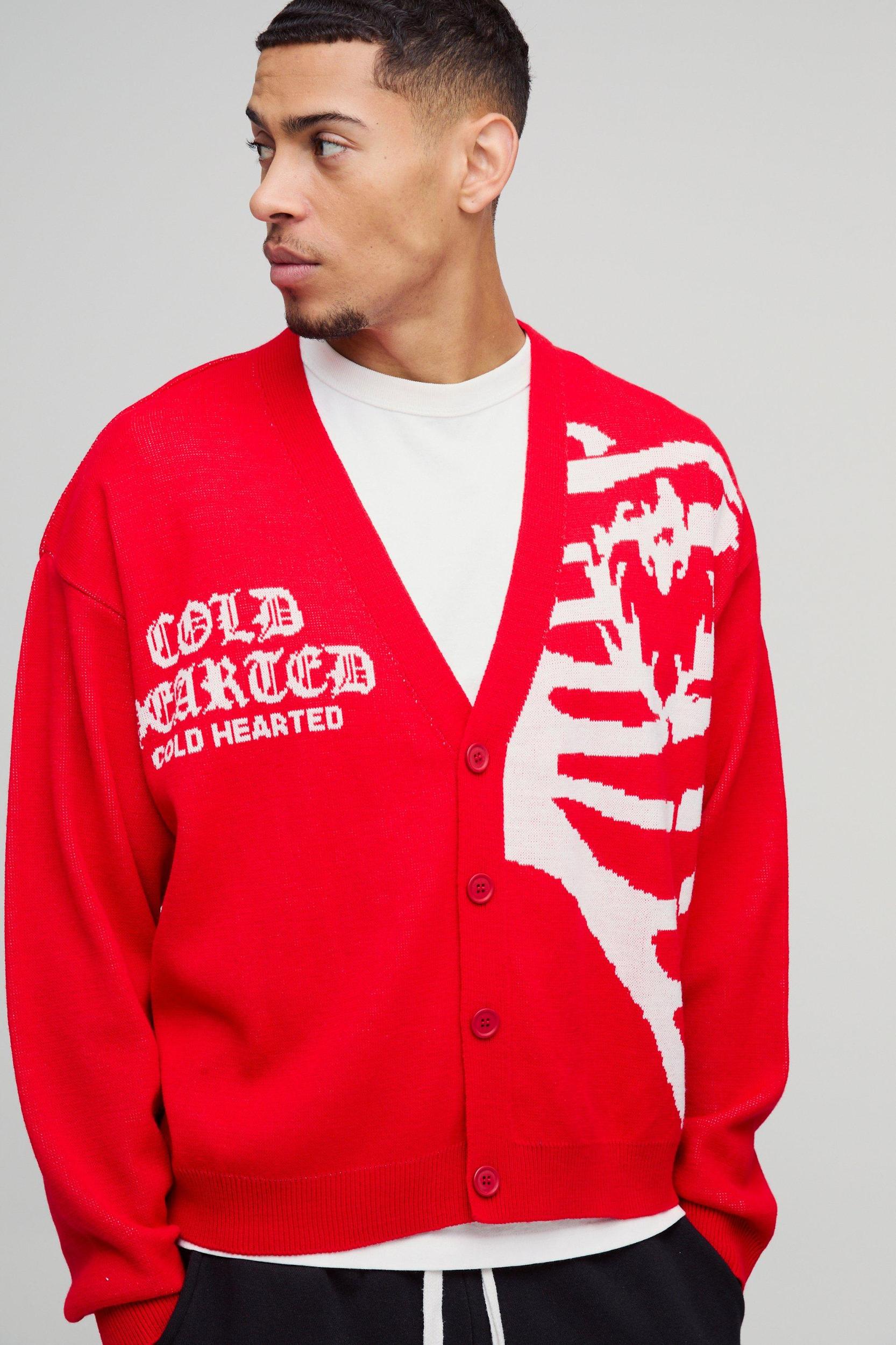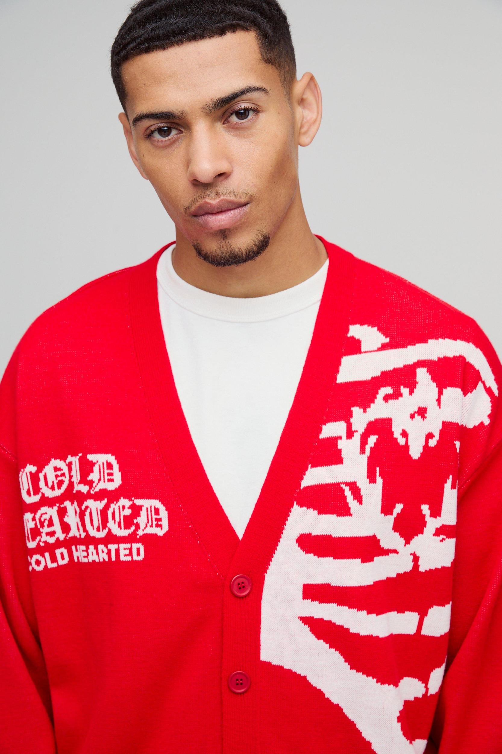 Oversized Boxy Drop Shoulder Spliced Skeleton Printed Knitted Cardigan | boohooMAN USA