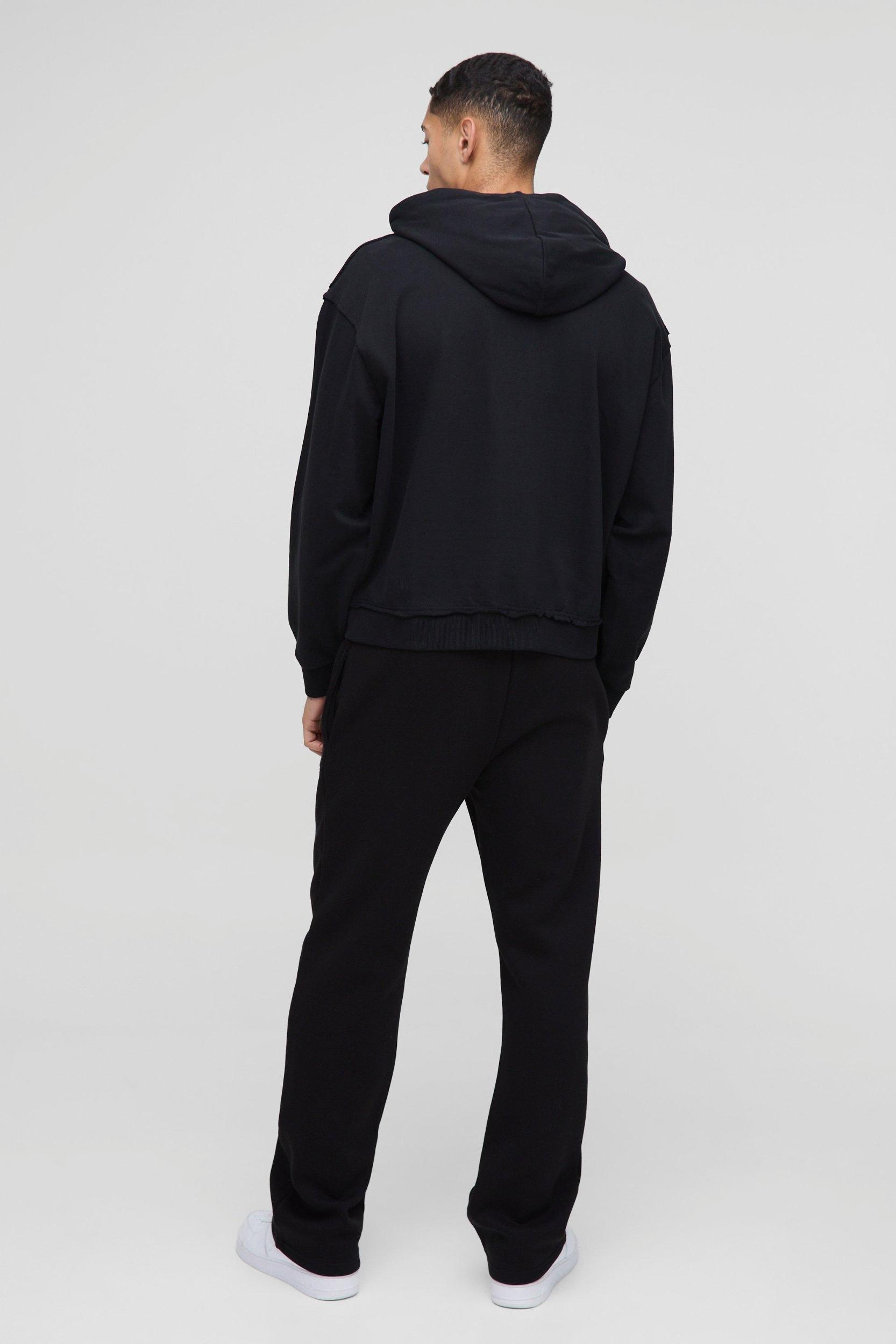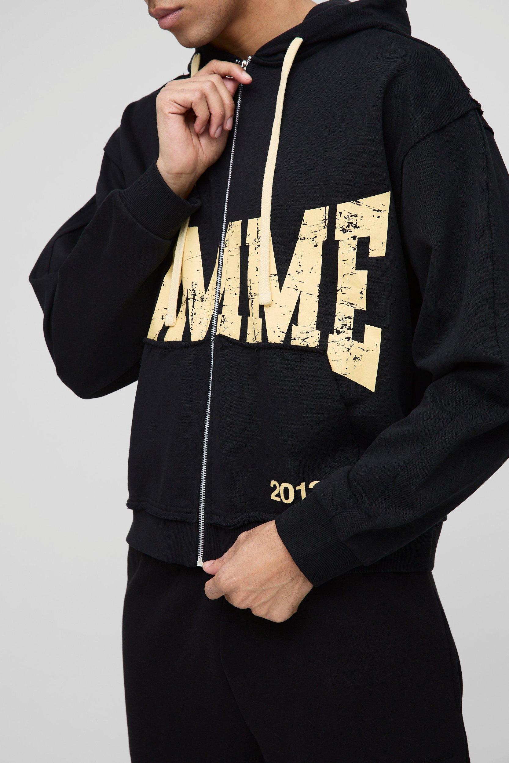Oversized Boxy Homme Raw Seams Loopback Zip Through Hoodie | boohooMAN USA