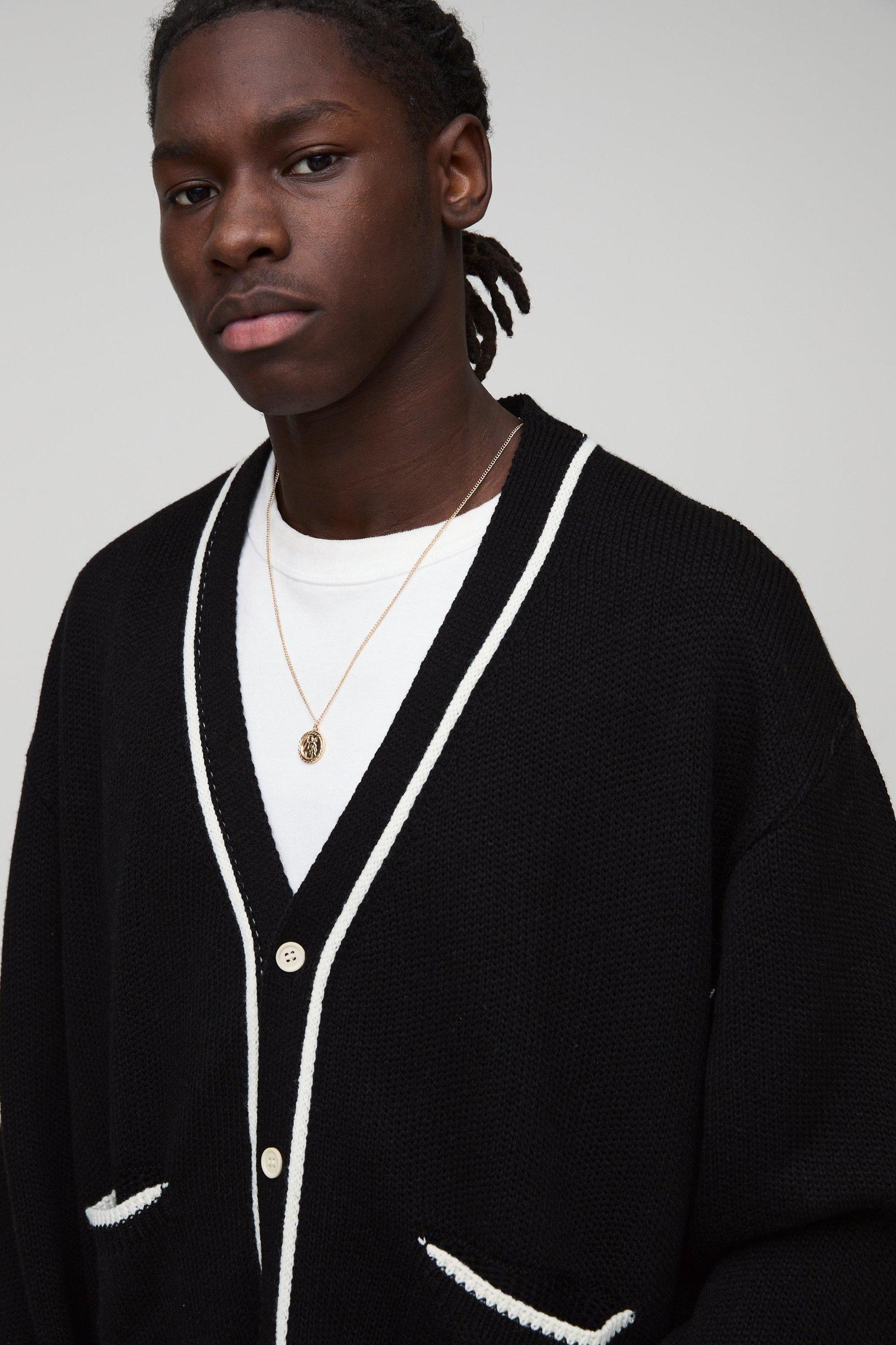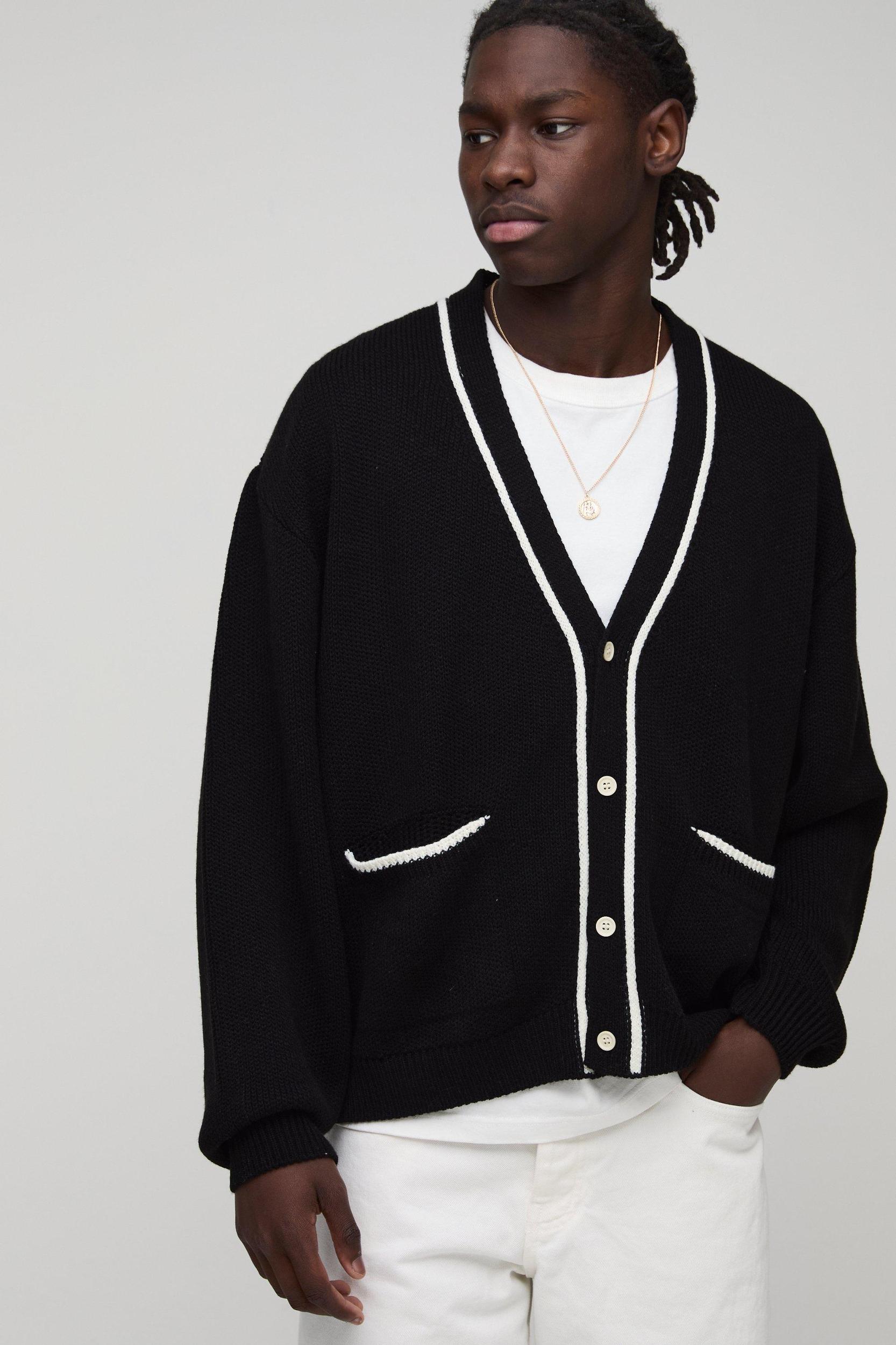 Oversized Boxy Knitted Cardigan With Tipping | boohooMAN USA