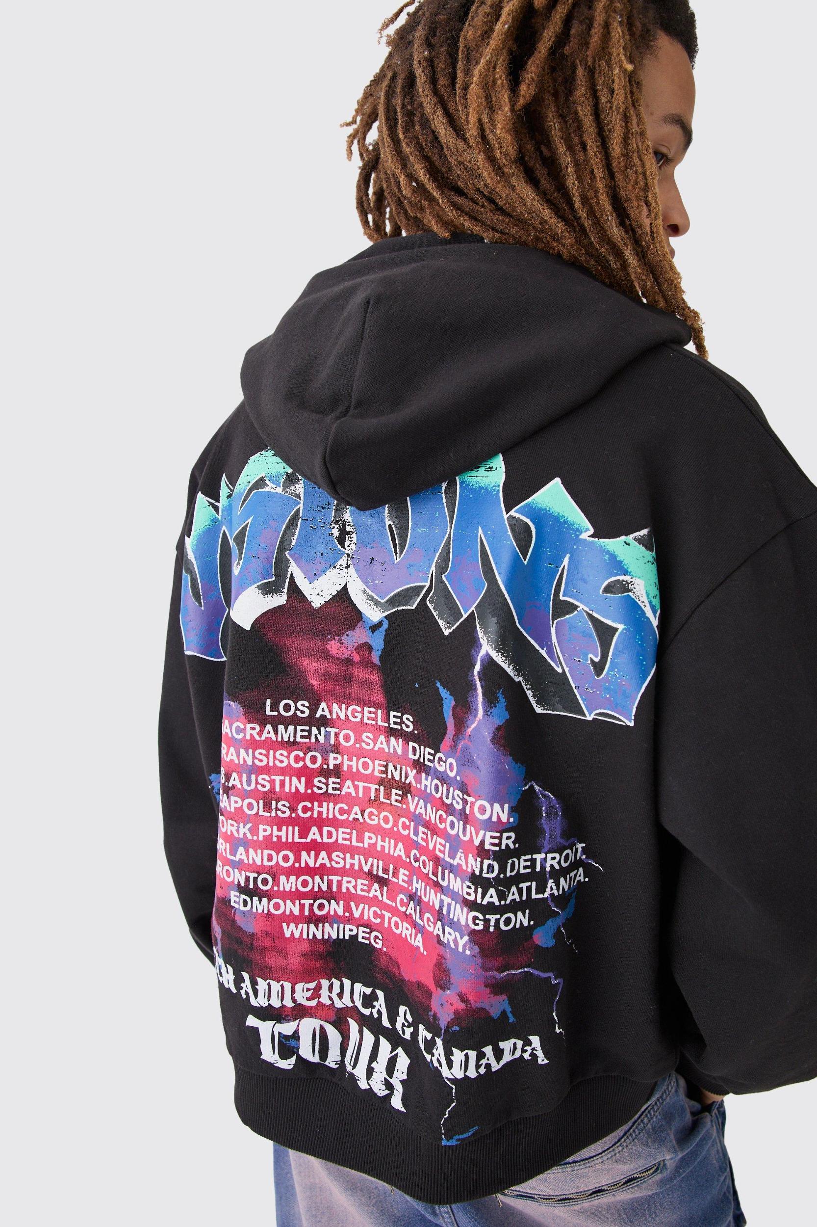 Mens Black Oversized Boxy Loopback Hoodie - Box your basics. Hoodies are essential for boxing those clean, comfortable layers. Hoodies work as a classic mid-layer or a standalone everyday basic when the weather is a little bit warmer. When you want a minimal colourway to effortlessly complement your fit, choosing a hoodie is always a solid option. Hoodies always look good, whether youre on a pullover scene or you rate a zip fasten. Wear your hoodie under a coat or jacket for a minimal daily look or combine with jeans & white trainers for a breezy casual vibe.Style: Printed HoodieDesign: GraphicFabric: LoopbackLength: CroppedNeckline: HoodedSleeve Length: Long Sleeve