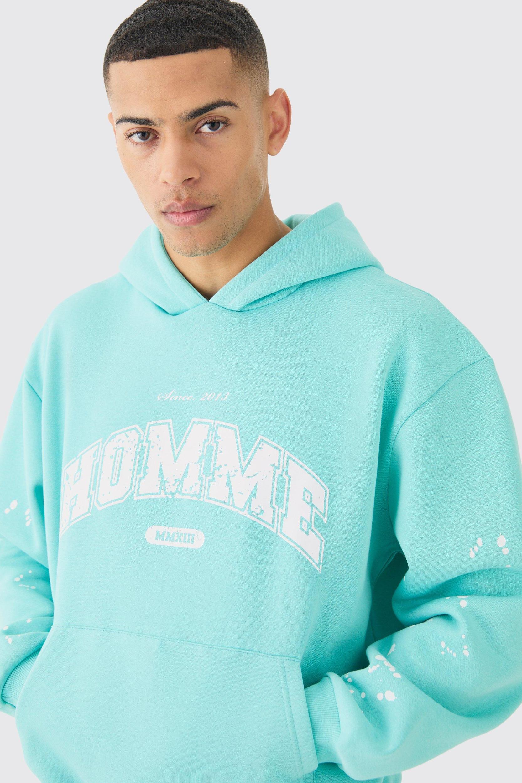 Oversized Boxy Paint Splatter Homme Hoodie | boohooMAN USA