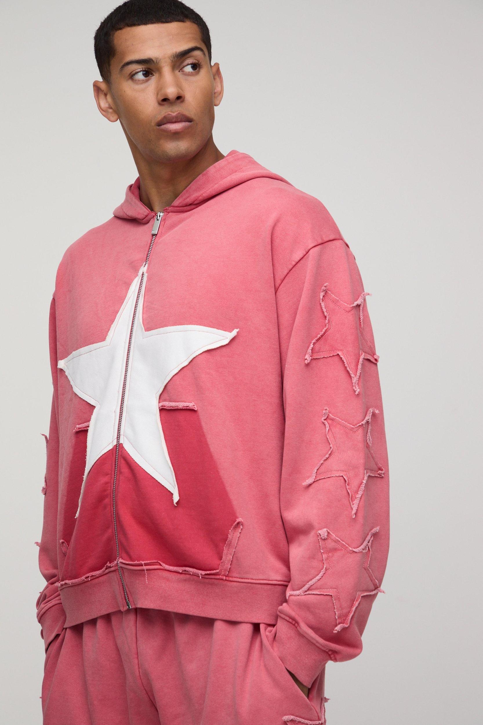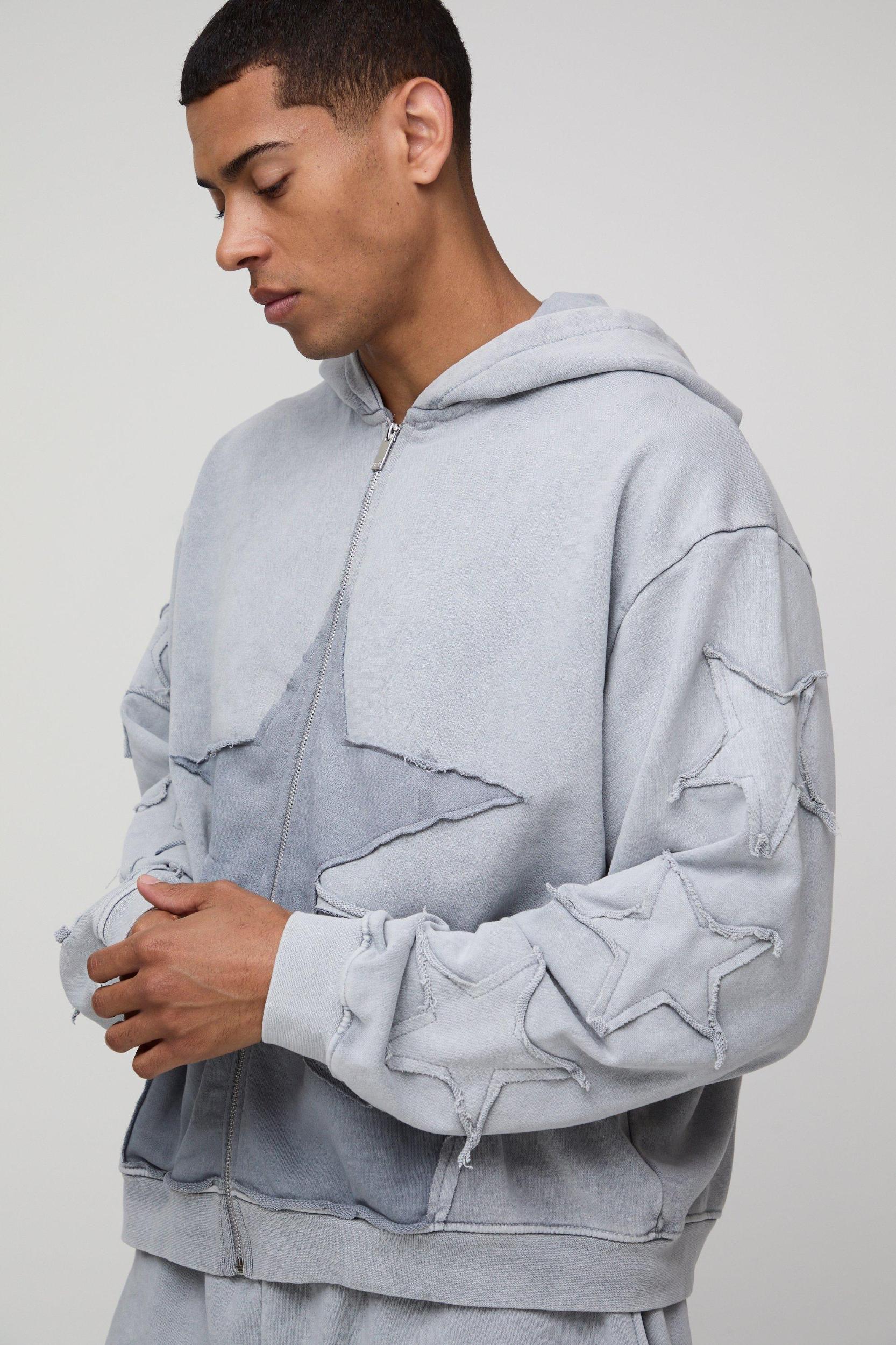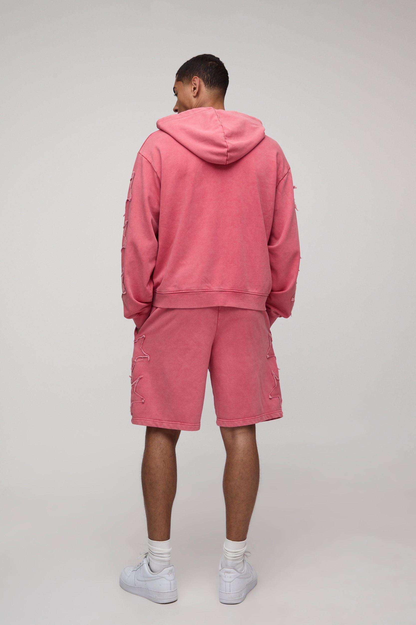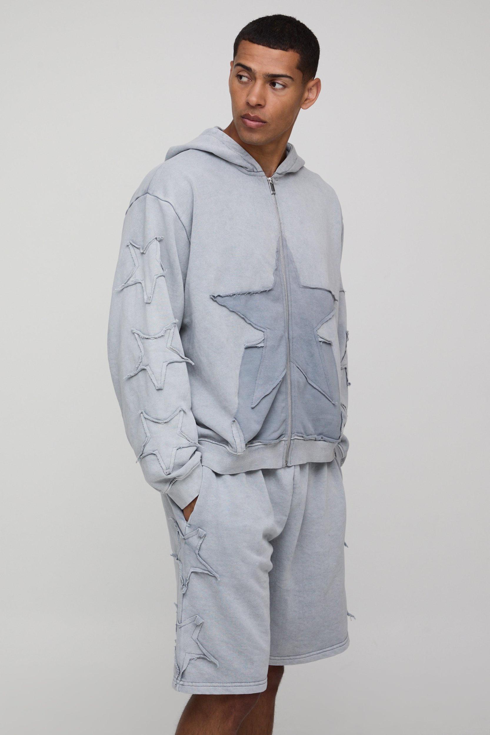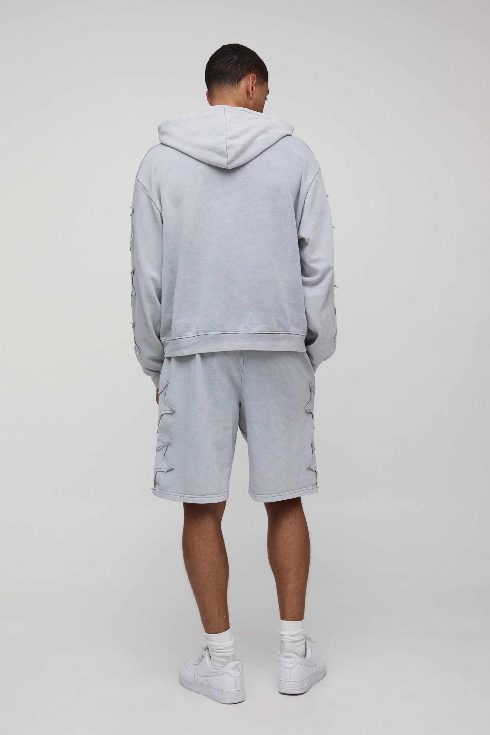 Oversized Boxy Short Hooded Zip Wash Tracksuit | boohooMAN USA