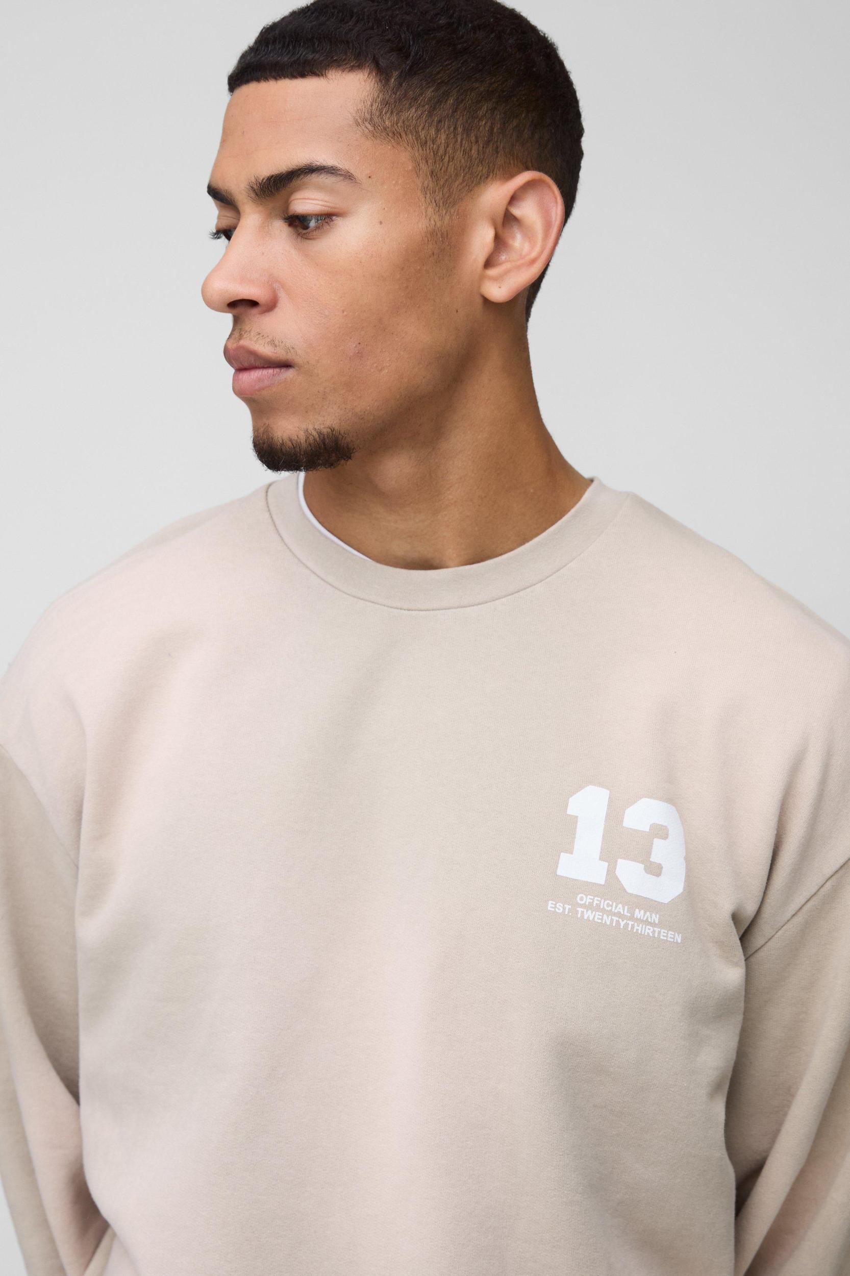 Oversized Boxy Spray Wash Ofcl Printed Sweatshirt | boohooMAN USA Product Image