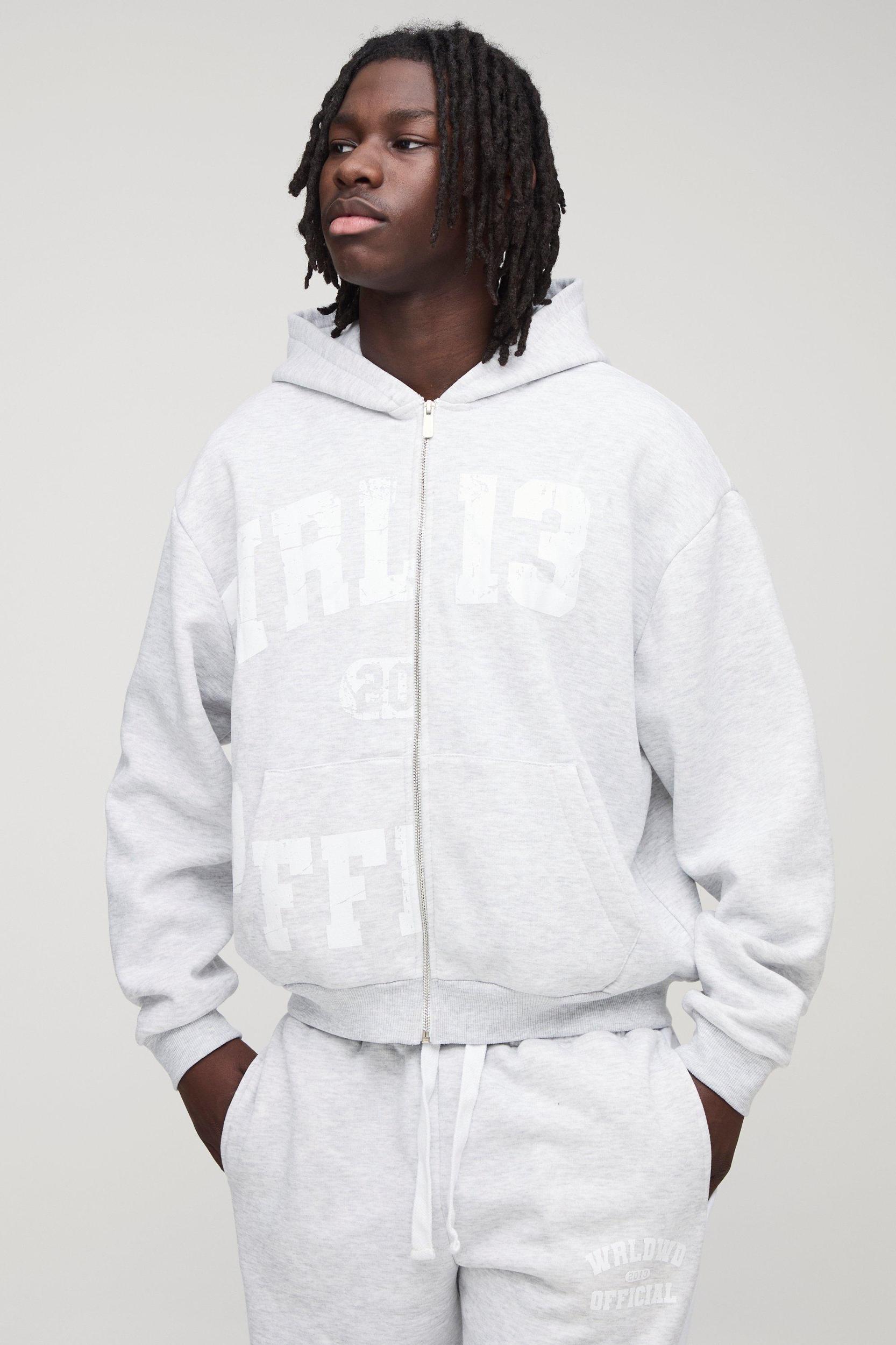 Create cool combos with hooded tracksuits from boohooMAN. Mix and match shapes and colours with this uber-stylish collection of hooded tracksuits, designed to go from sofa to streets with no extra effort. Show off your lines with a skinny fit set, or pick an oversized hoodie and sweatpants duo for comfy street casual. With a white tee and sneakers you can rock any combo – how about all black for a bold monochrome, long sleeves and shorts for casual summer party vibes or even baby pink or blue for a softer aesthetic. Whichever you choose, with our range of hooded men's tracksuits you'll look effortlessly cool both in the gym and out.Style: Printed Long TracksuitDesign: SloganFabric: BrushbackDetail: GussetLength: RegularNeckline: Hooded Zip ThroughSleeve Length: Long Sleeve