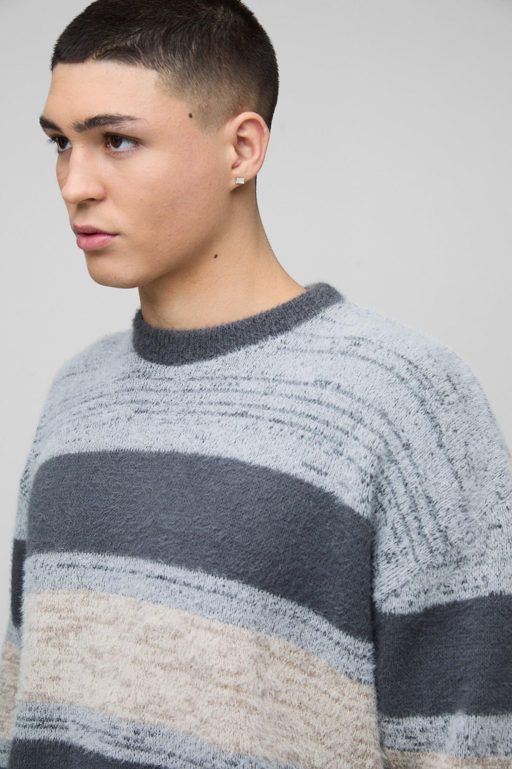 Oversized Brushed Stripe Knitted Sweater | boohooMAN USA Product Image
