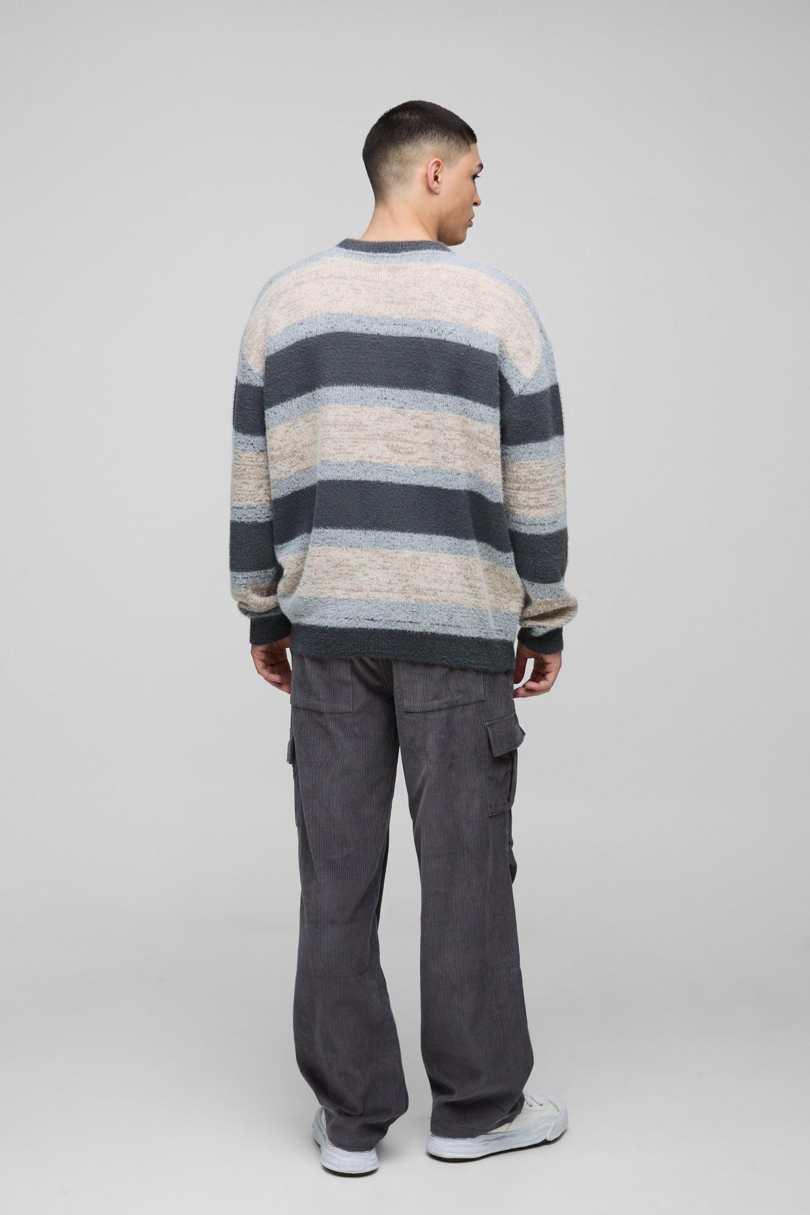 Oversized Brushed Stripe Knitted Sweater | boohooMAN USA