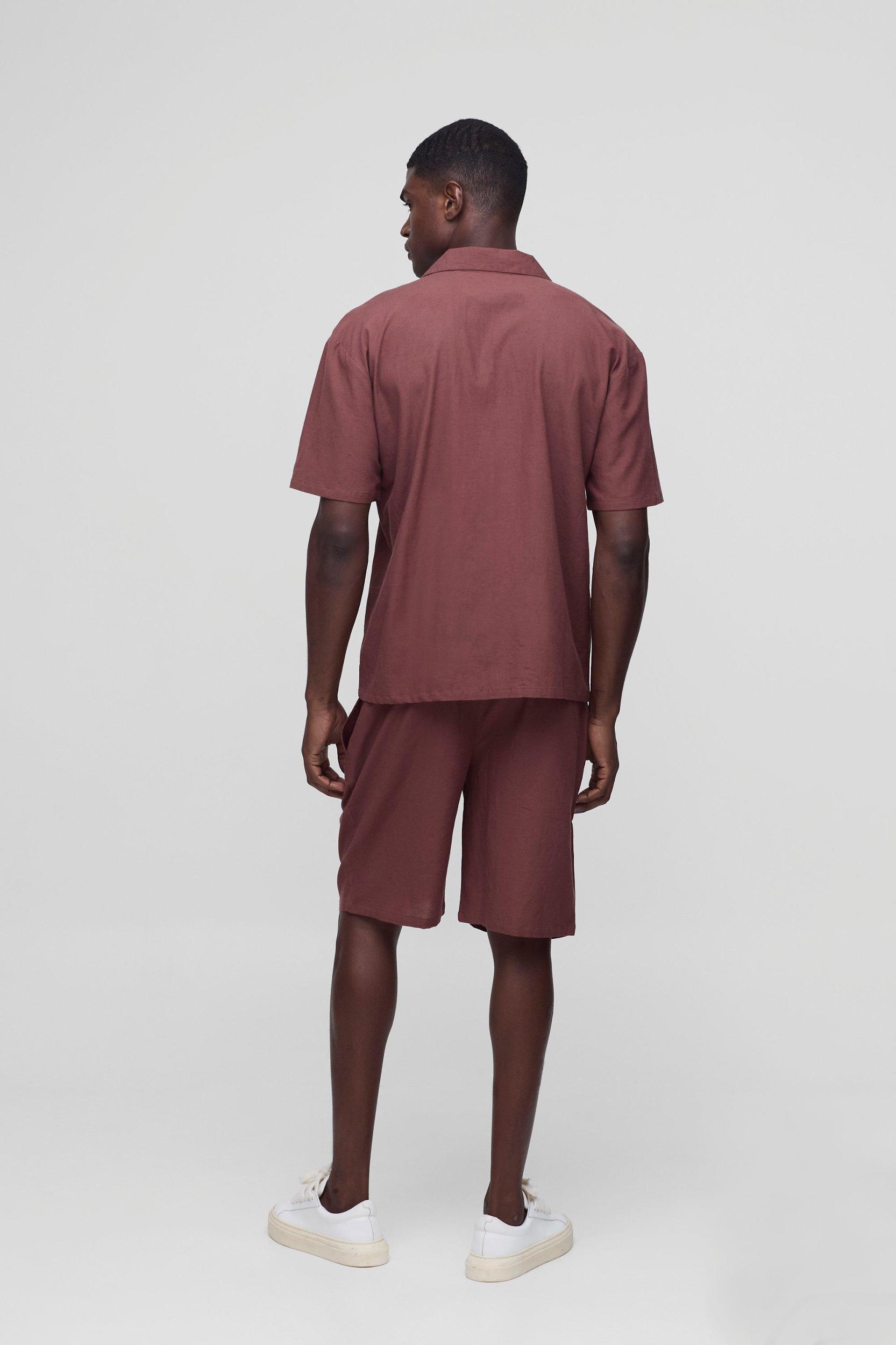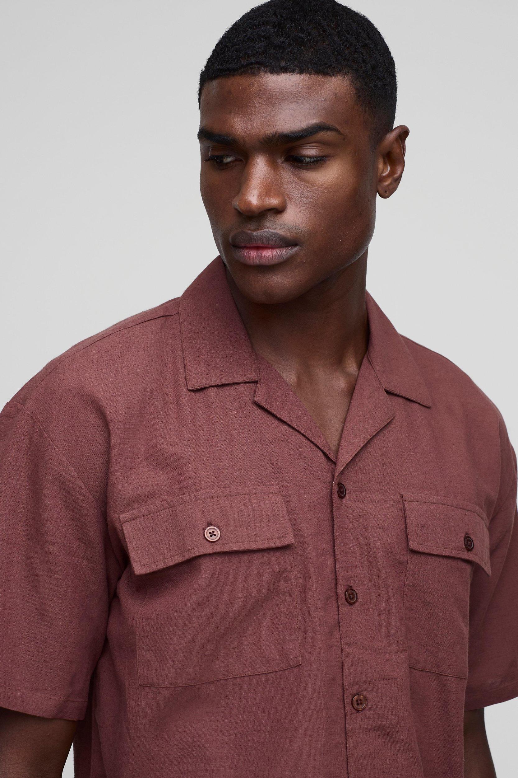 Mens Oversized Cargo Pocket Shirt & Short Set - Brown - Oversized Cargo Pocket Shirt & Short Set