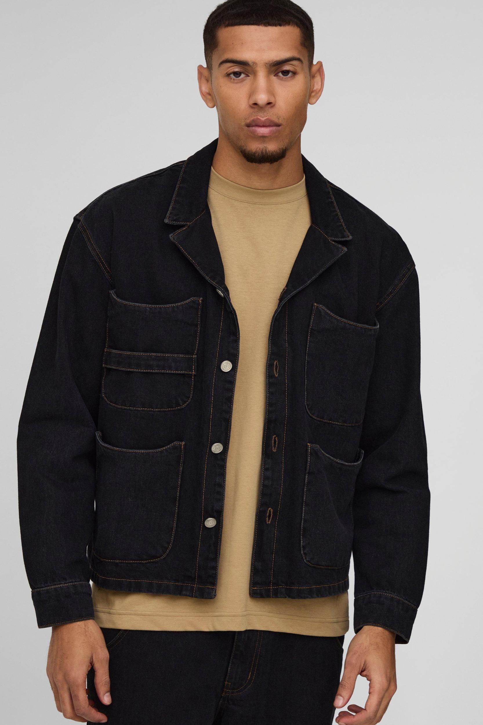 Oversized Carpenter Pocket Denim Shirt | boohooMAN USA