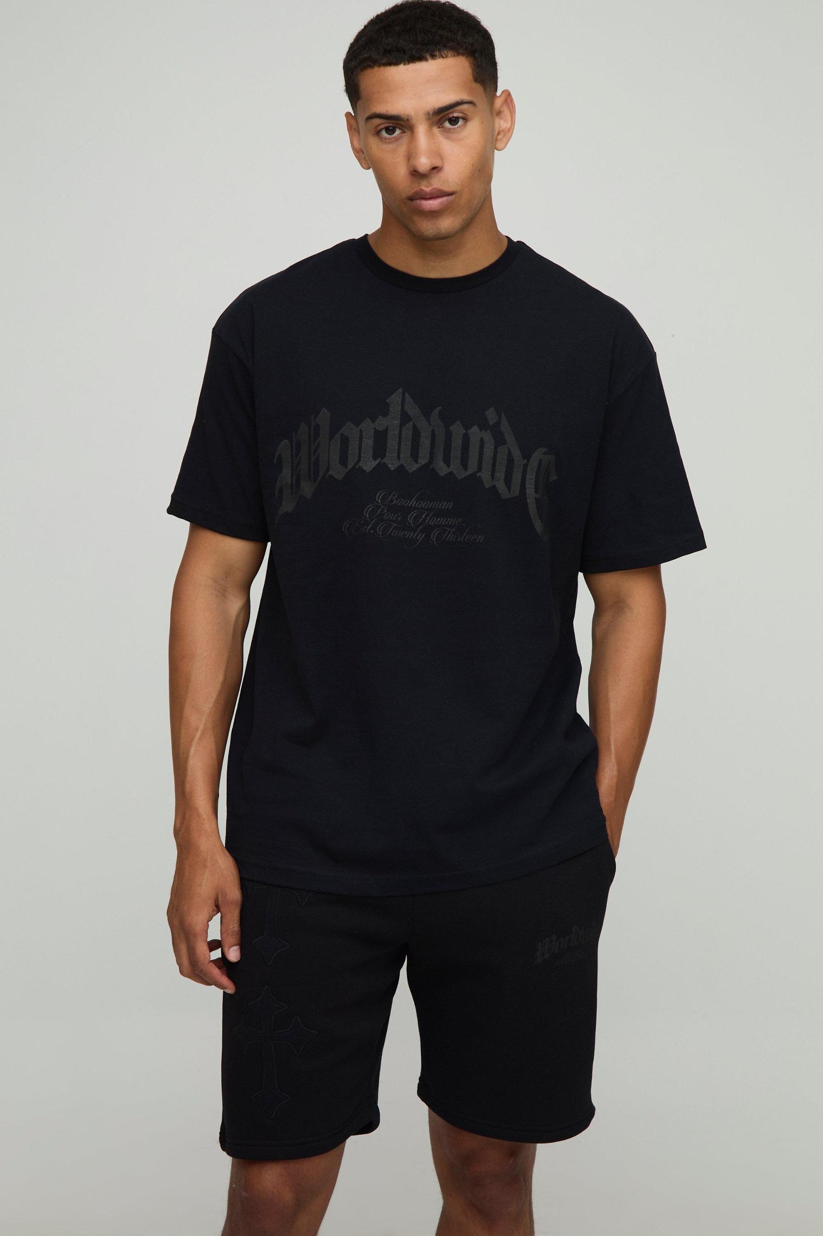 Oversized Cross Applique T-Shirt & Short Set | boohooMAN USA