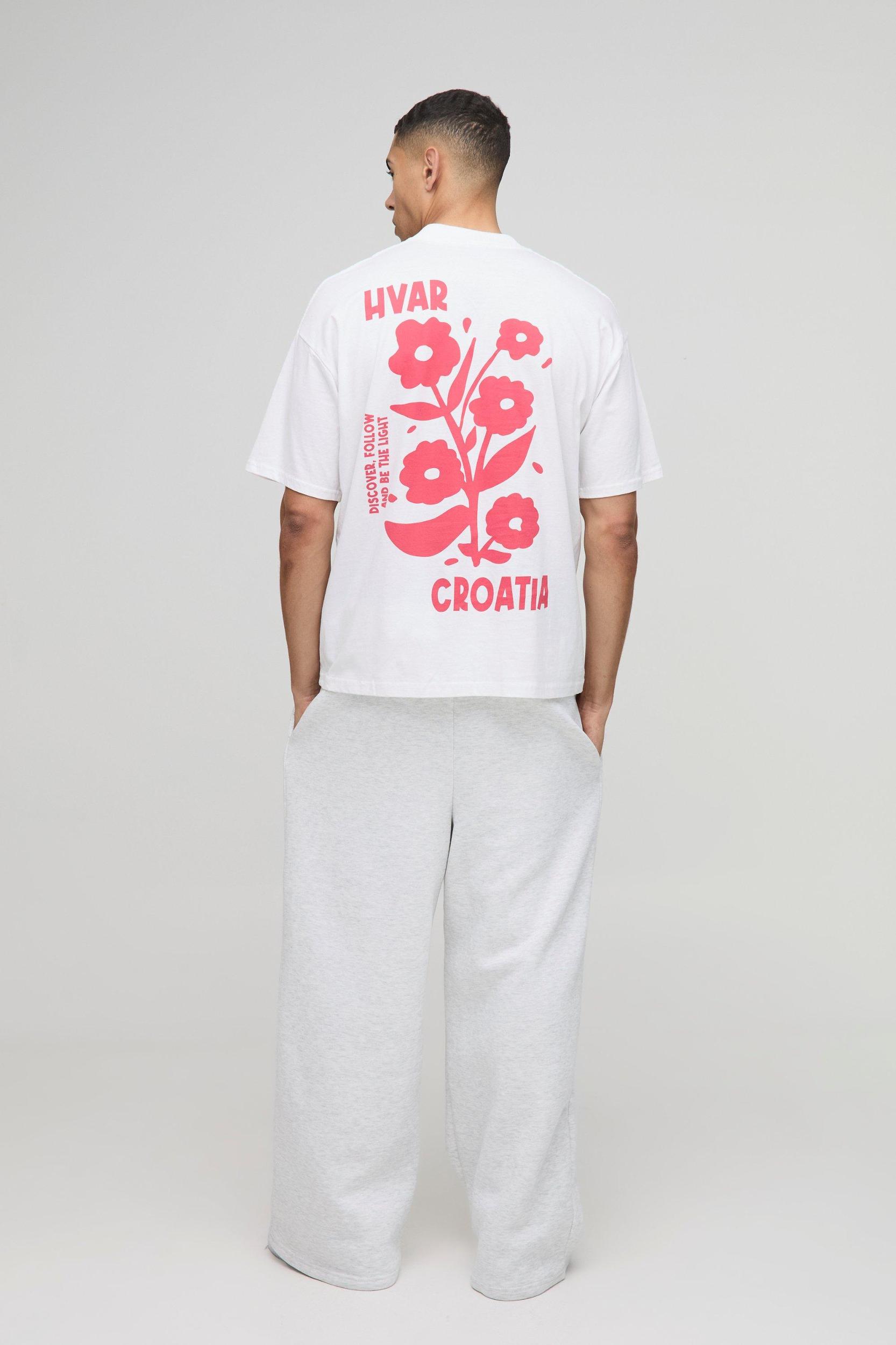 Oversized Extended Neck Croatia Floral Graphic T-Shirt | boohooMAN USA