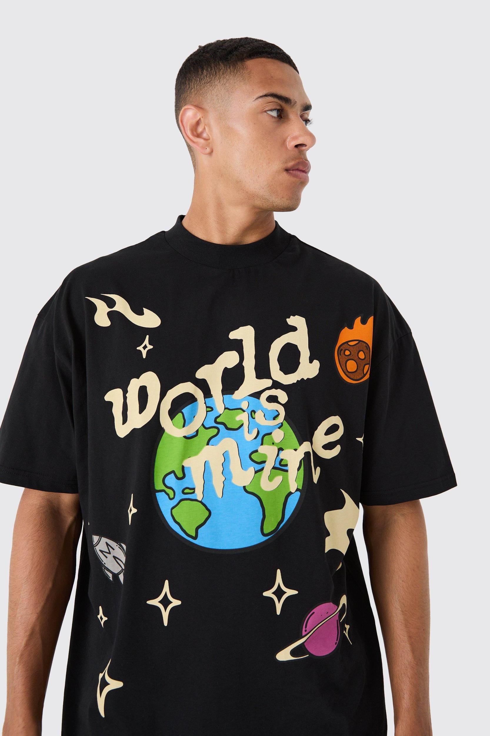 Mens Black Oversized Extended Neck Space Graphic T-shirt - Timeless t-shirts We all know about t-shirts, a light layer which has stood the test of time. T-shirts have been about since day one. Theyre a seasonless staple which gives your wardrobe a solid foundation to build off. Whether youre about a plain tee; printed, striped or long-sleeve or youre flexing something oversized for a comfortably casual look, make sure your fits have the foundations they need with our range of tees. Combine a plain white tee with denim and trainers for a versatile everyday fit or pair with cropped trousers to secure minimalistic vibes.Style: Printed T-ShirtDesign: SpaceFabric: JerseyLength: LonglineNeckline: Extended NeckSleeve Length: Short Sleeve