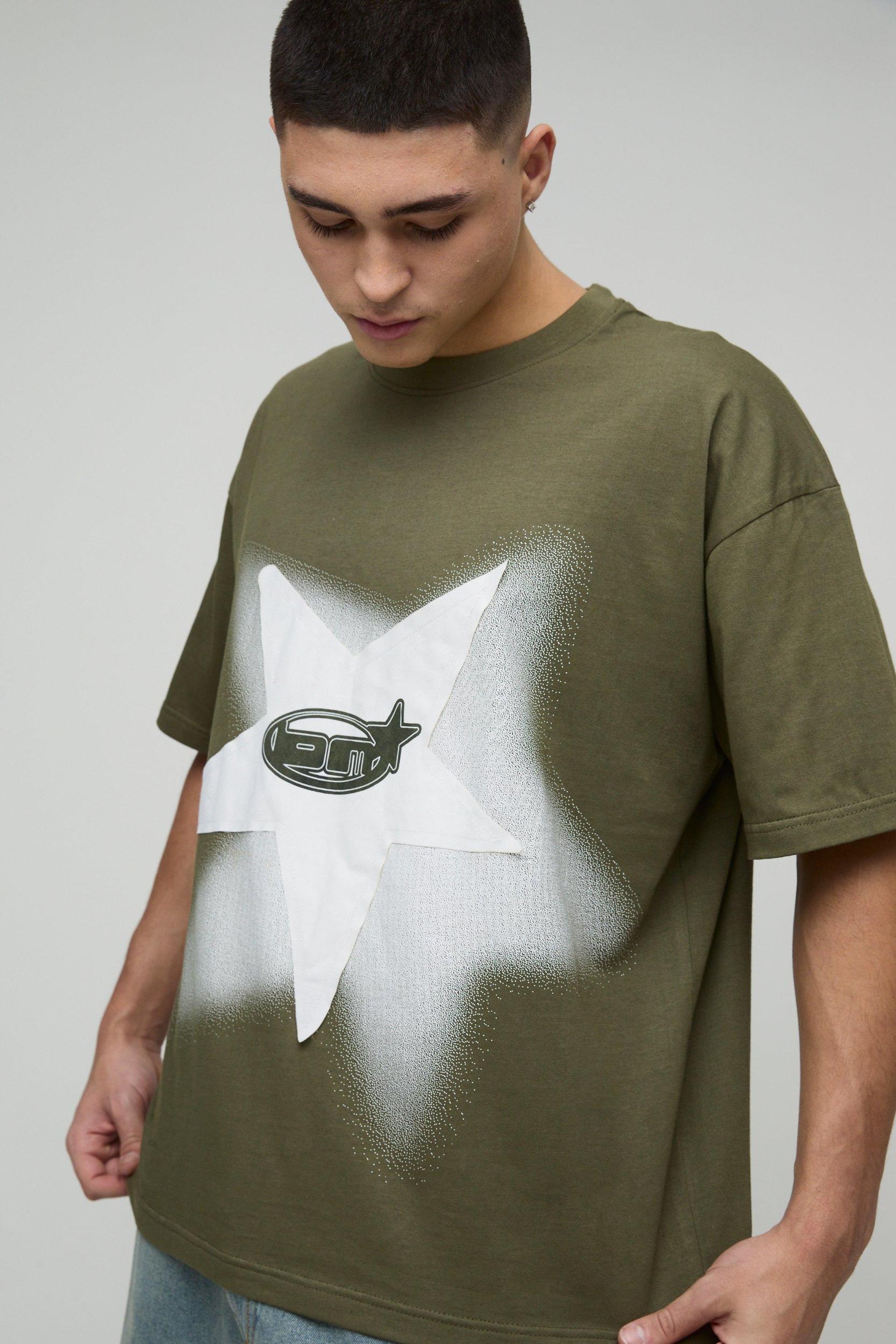 Oversized Extended Neck Star Applique Graphic T-Shirt | boohooMAN USA