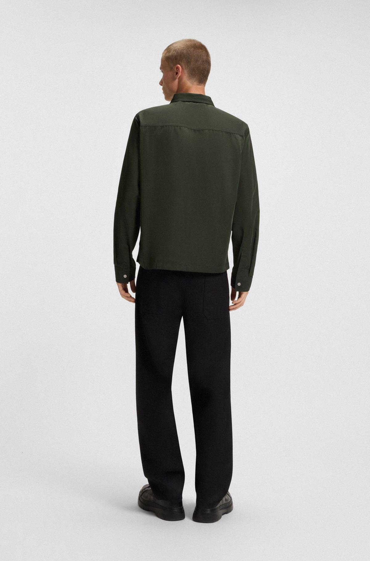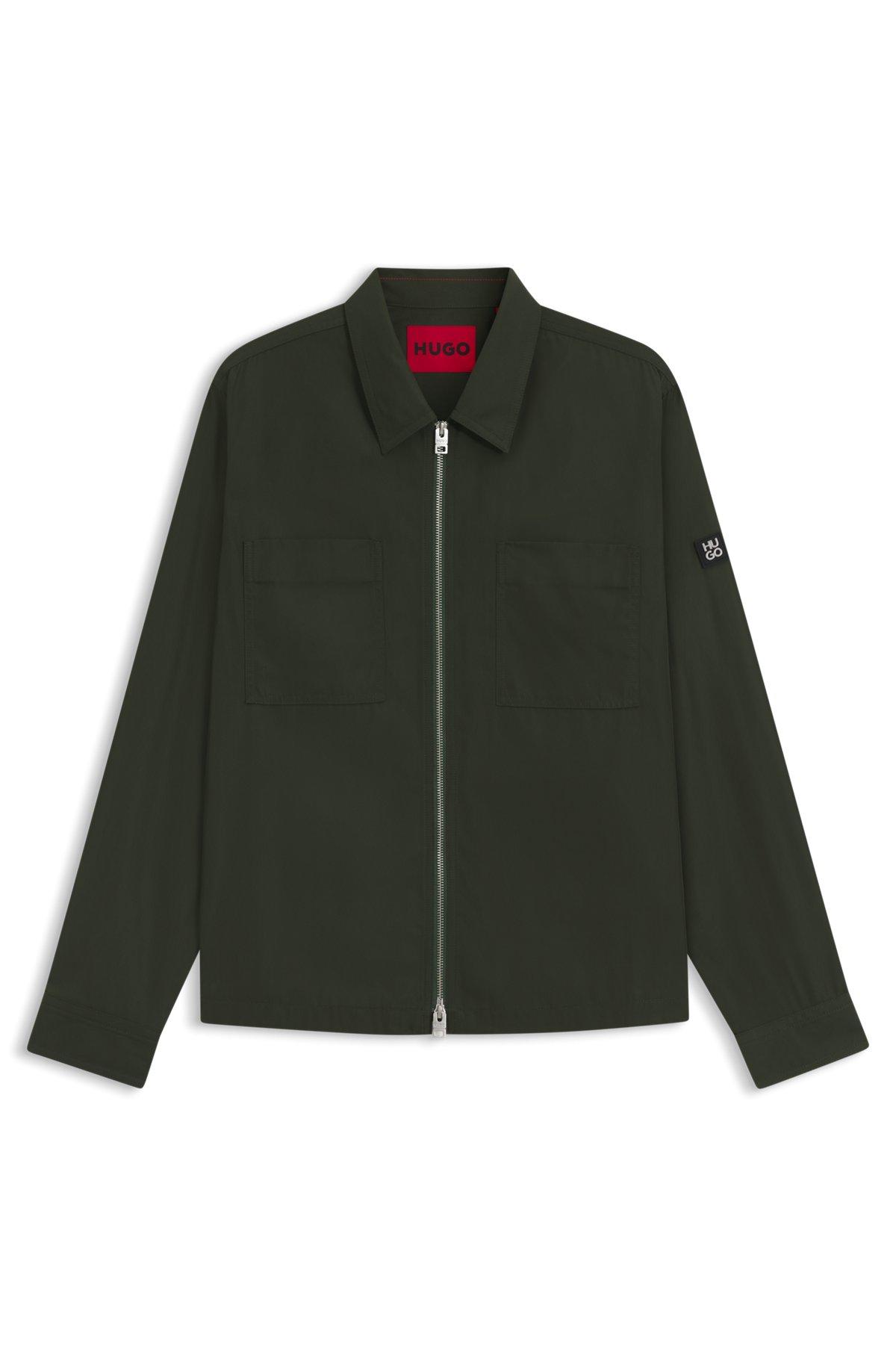 This water-repellent HUGO Menswear shirt offers protection and contemporary appeal. Laid-back fit. Modern zip-up front. Stacked-logo trim on the sleeve.