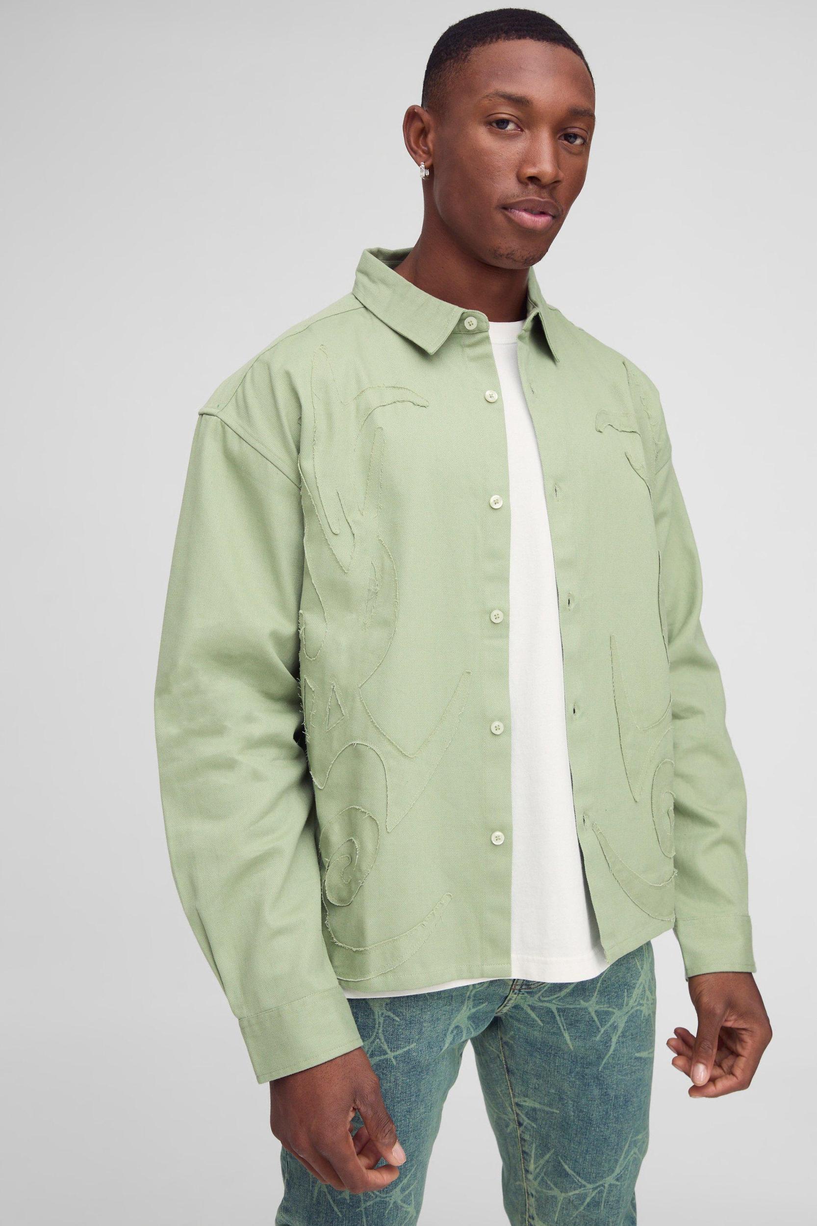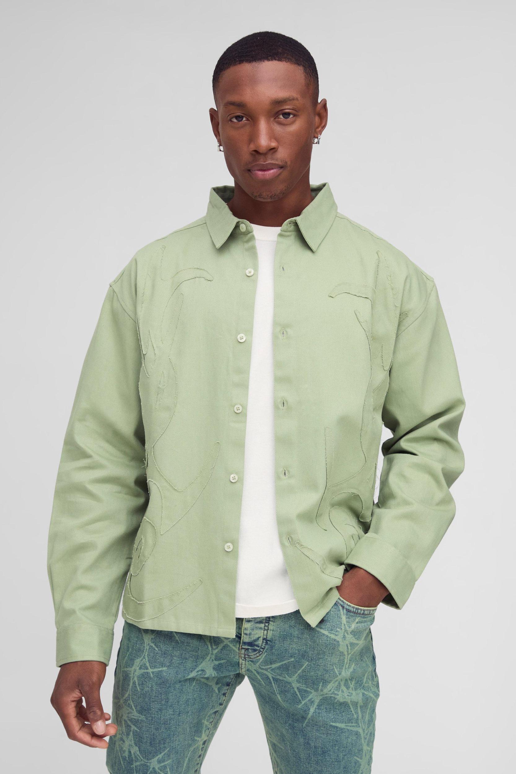 Oversized Flame Applique Shirt | boohooMAN USA Product Image