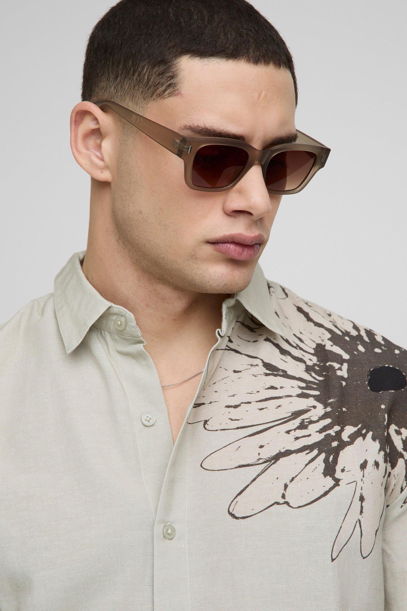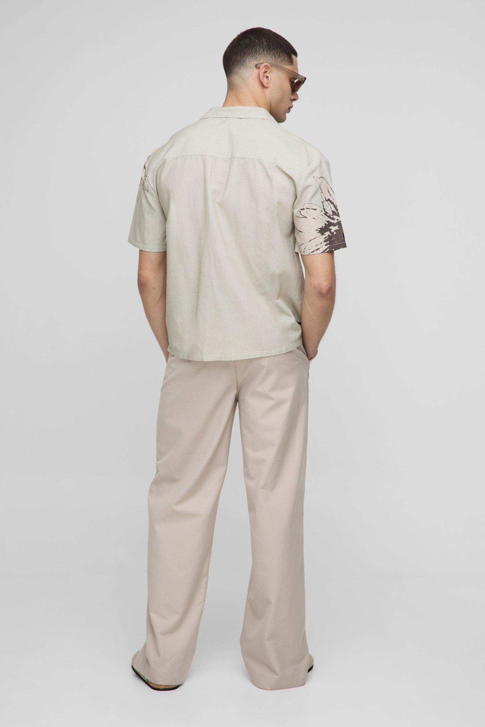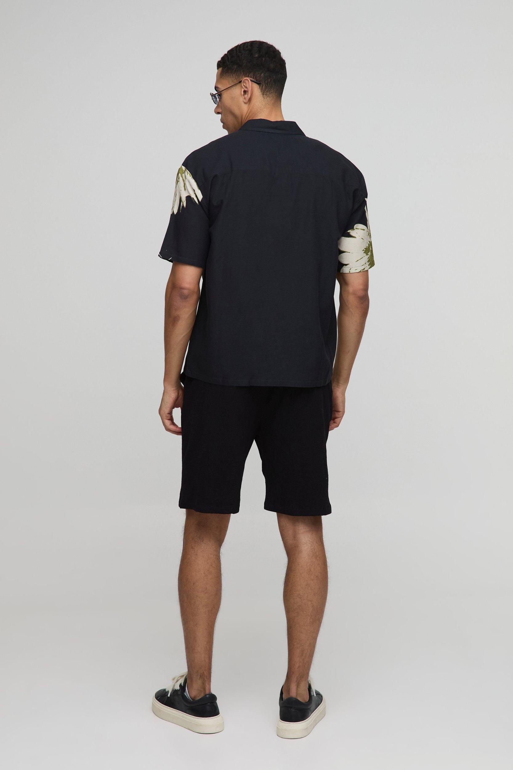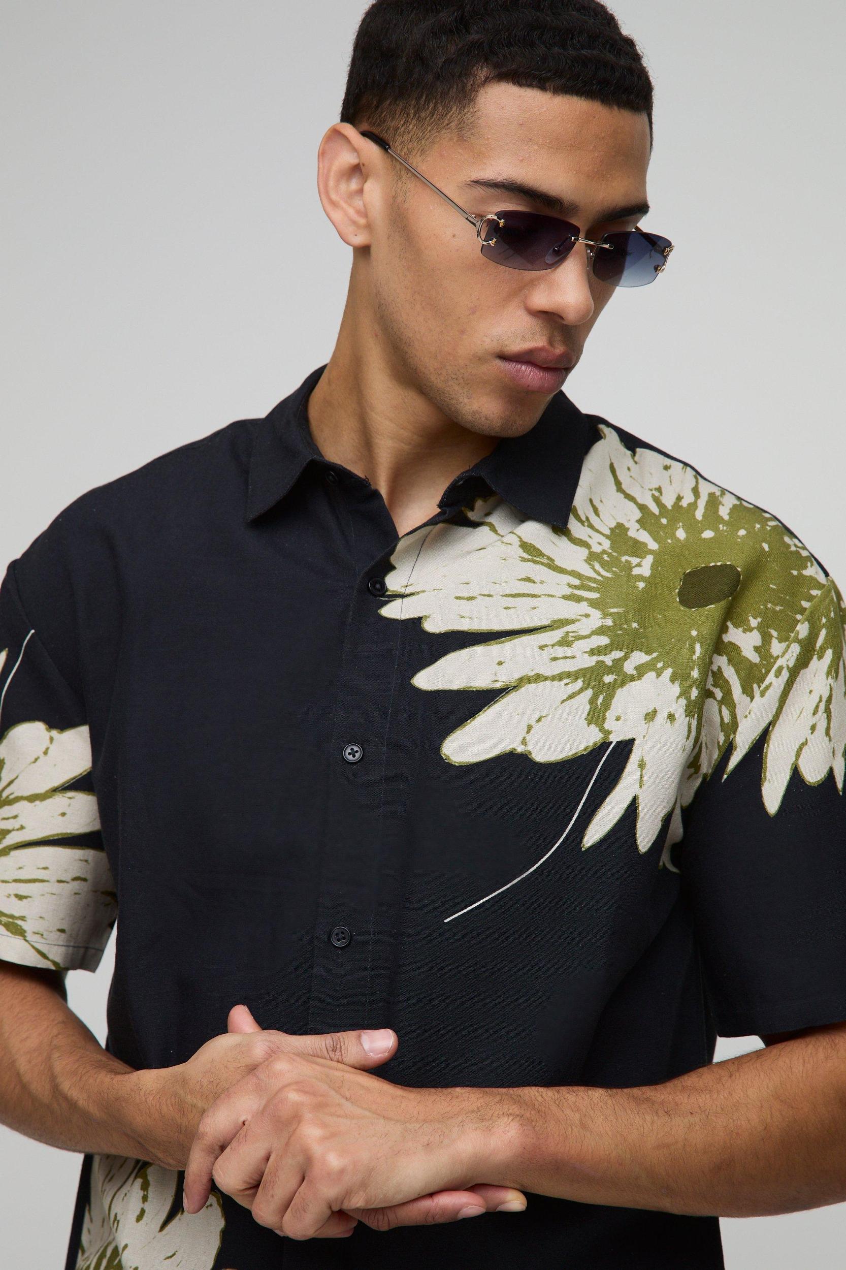 Oversized Floral Print Linen Look Shirt | boohooMAN USA