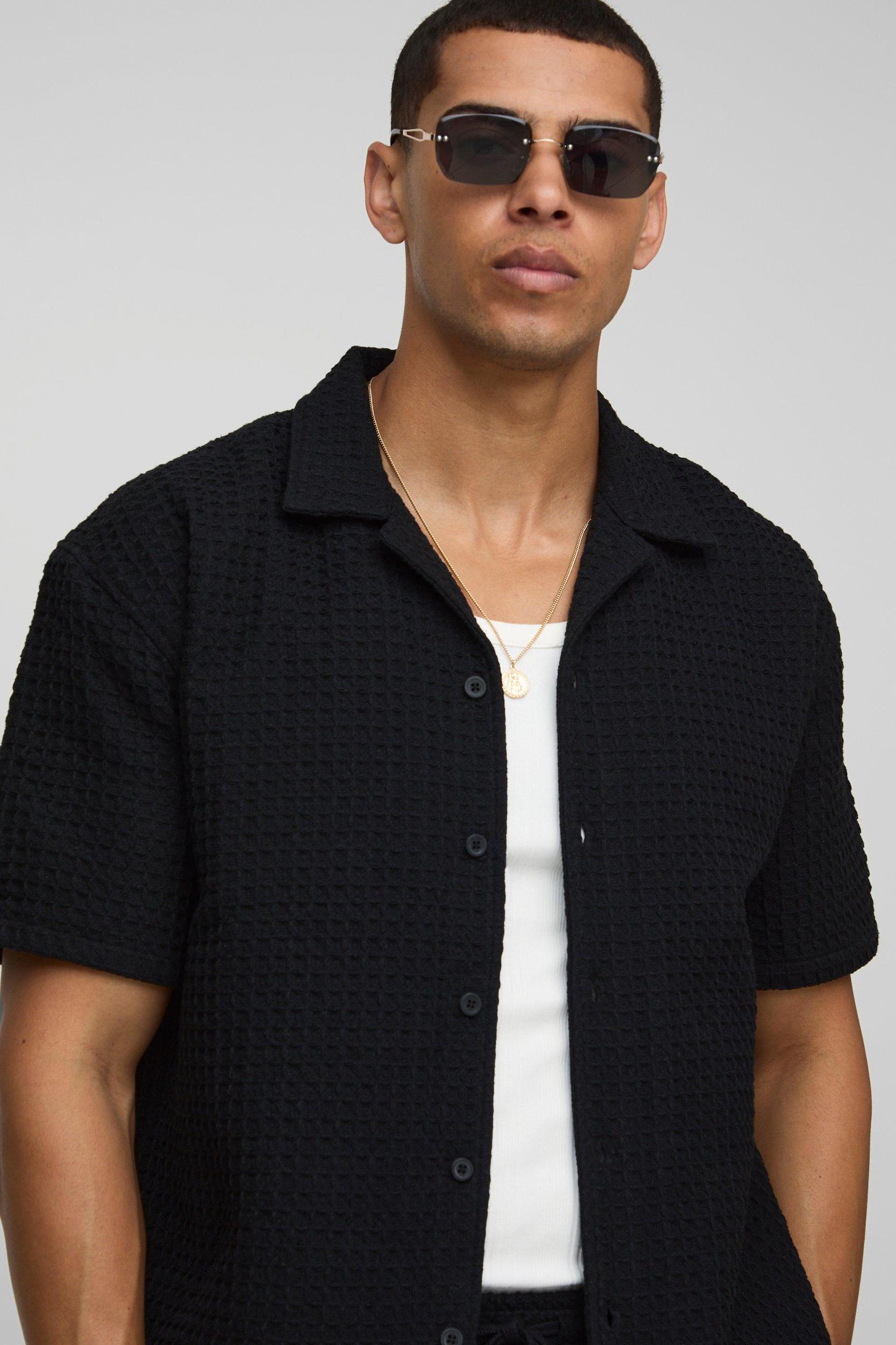 Oversized Jumbo Waffle Revere Shirt | boohooMAN USA