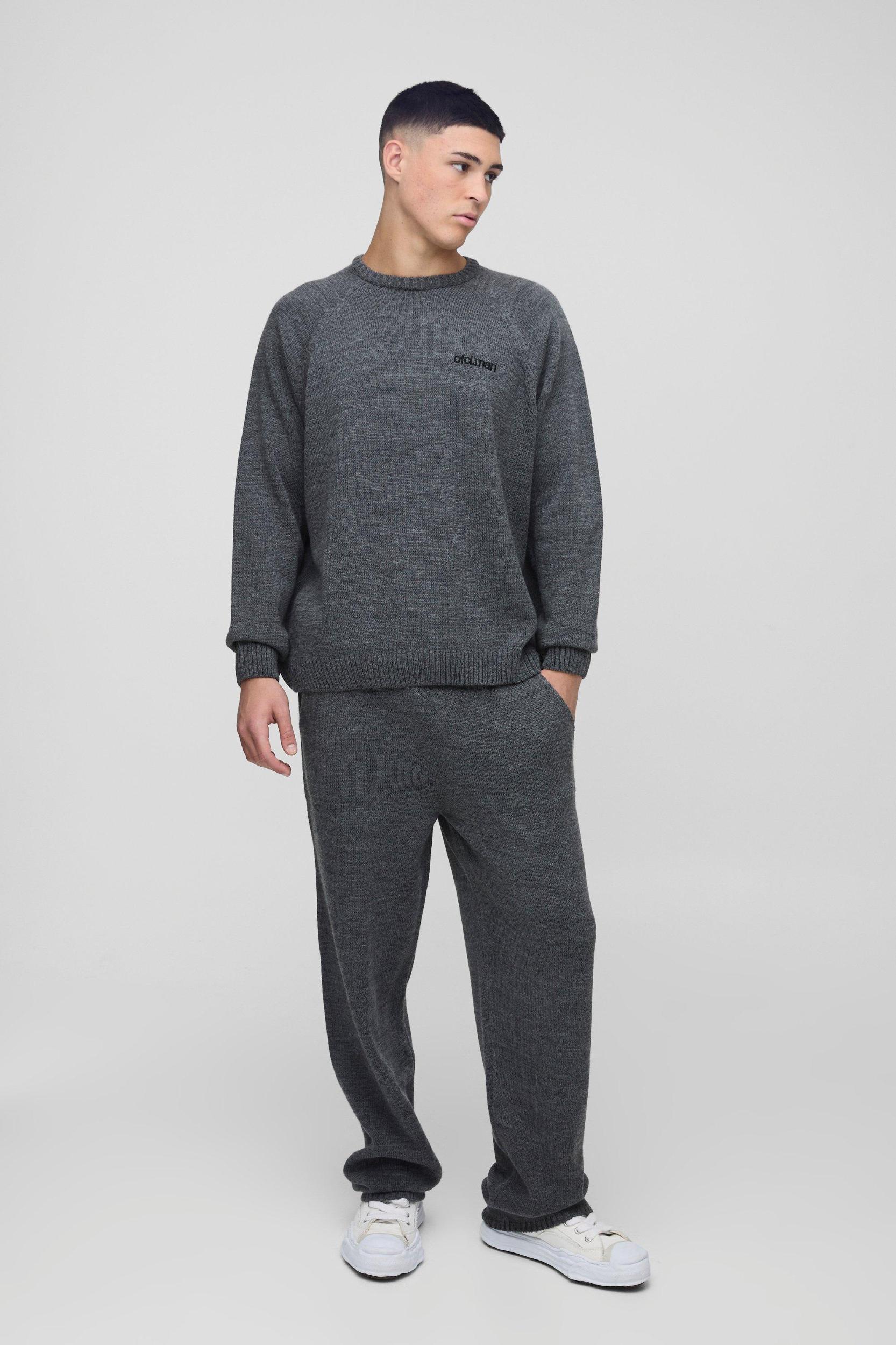 Oversized Knitted Raglan Sweater & Regular Sweatpants Tracksuit | boohooMAN USA
