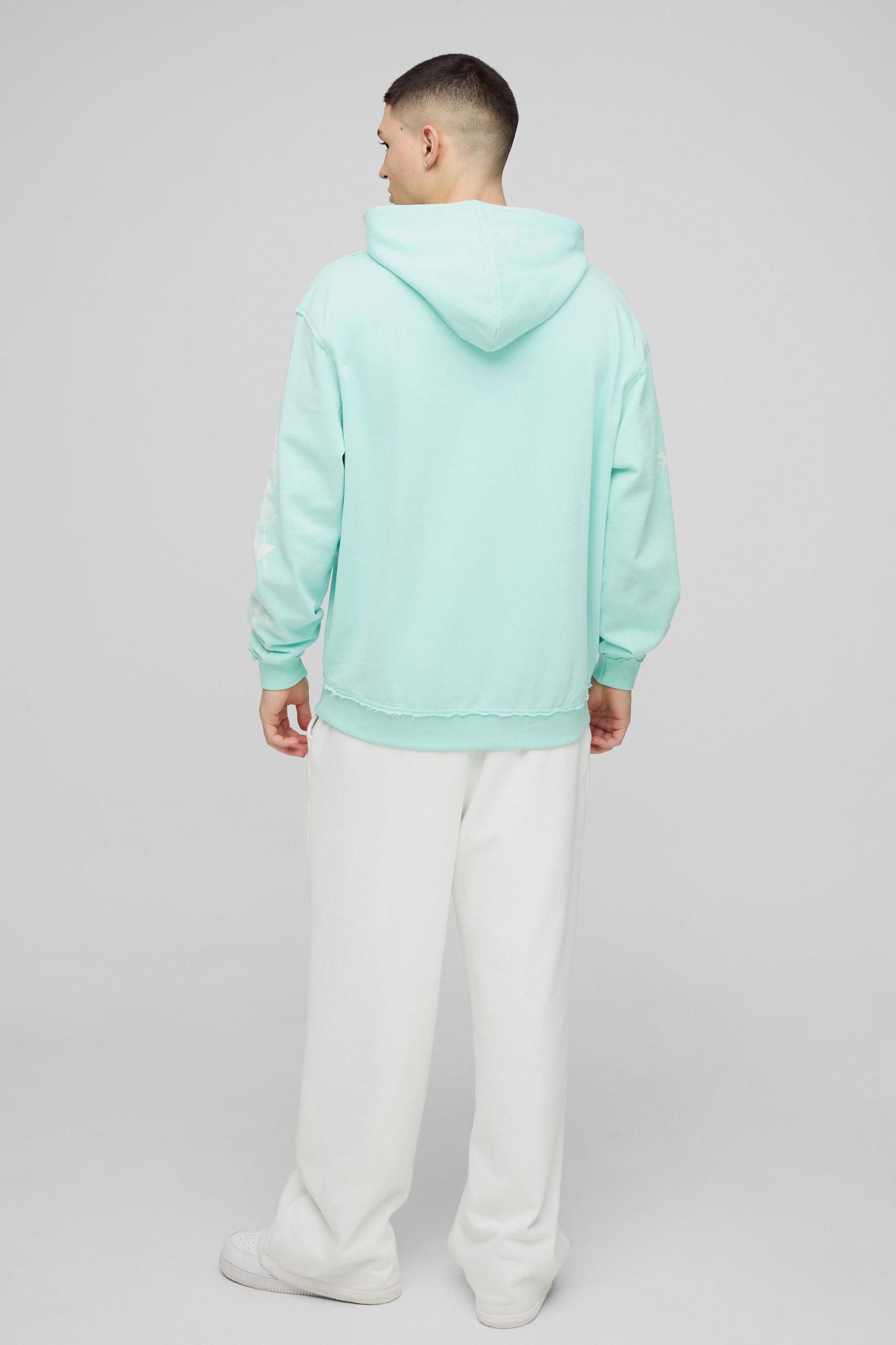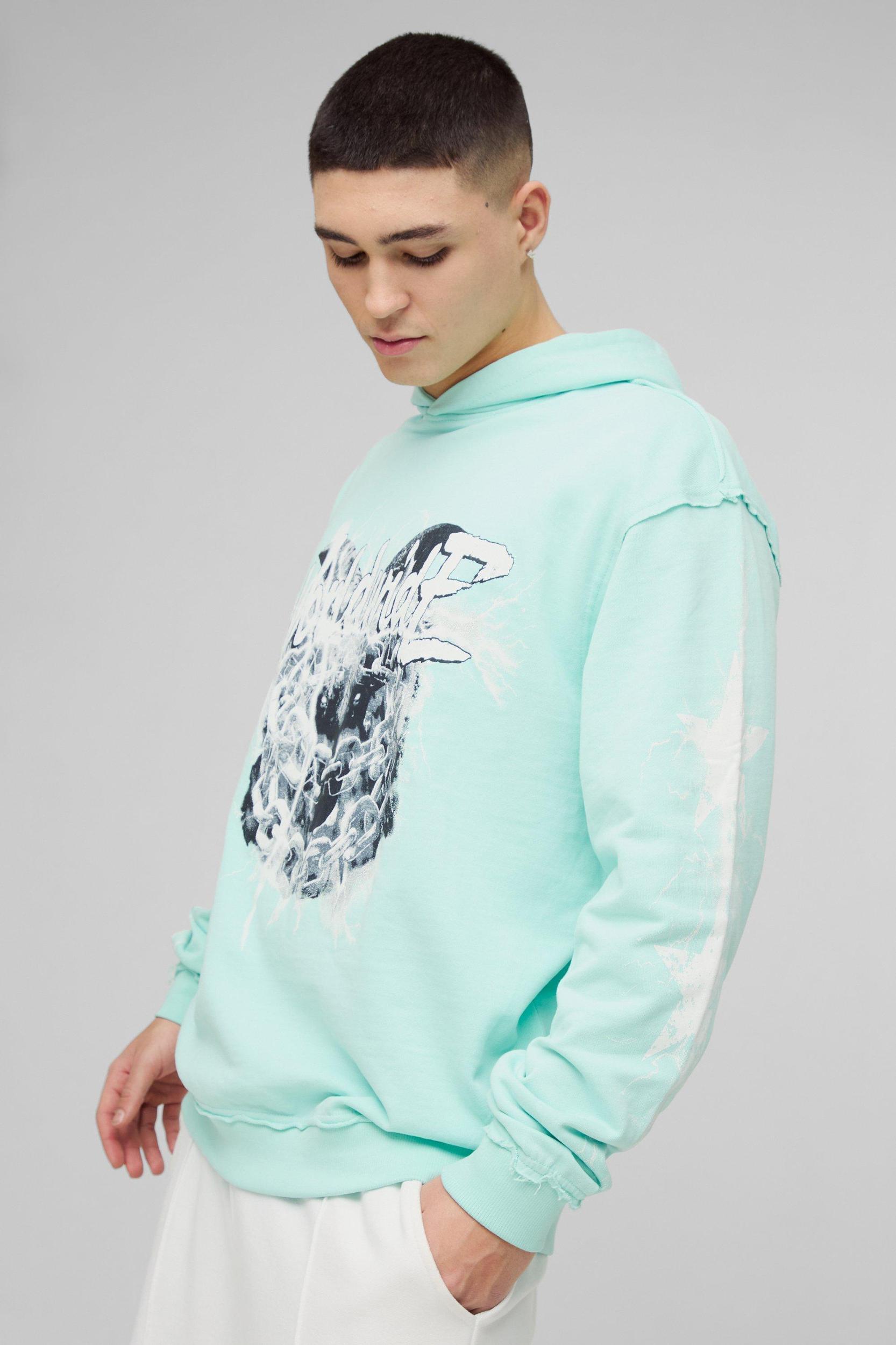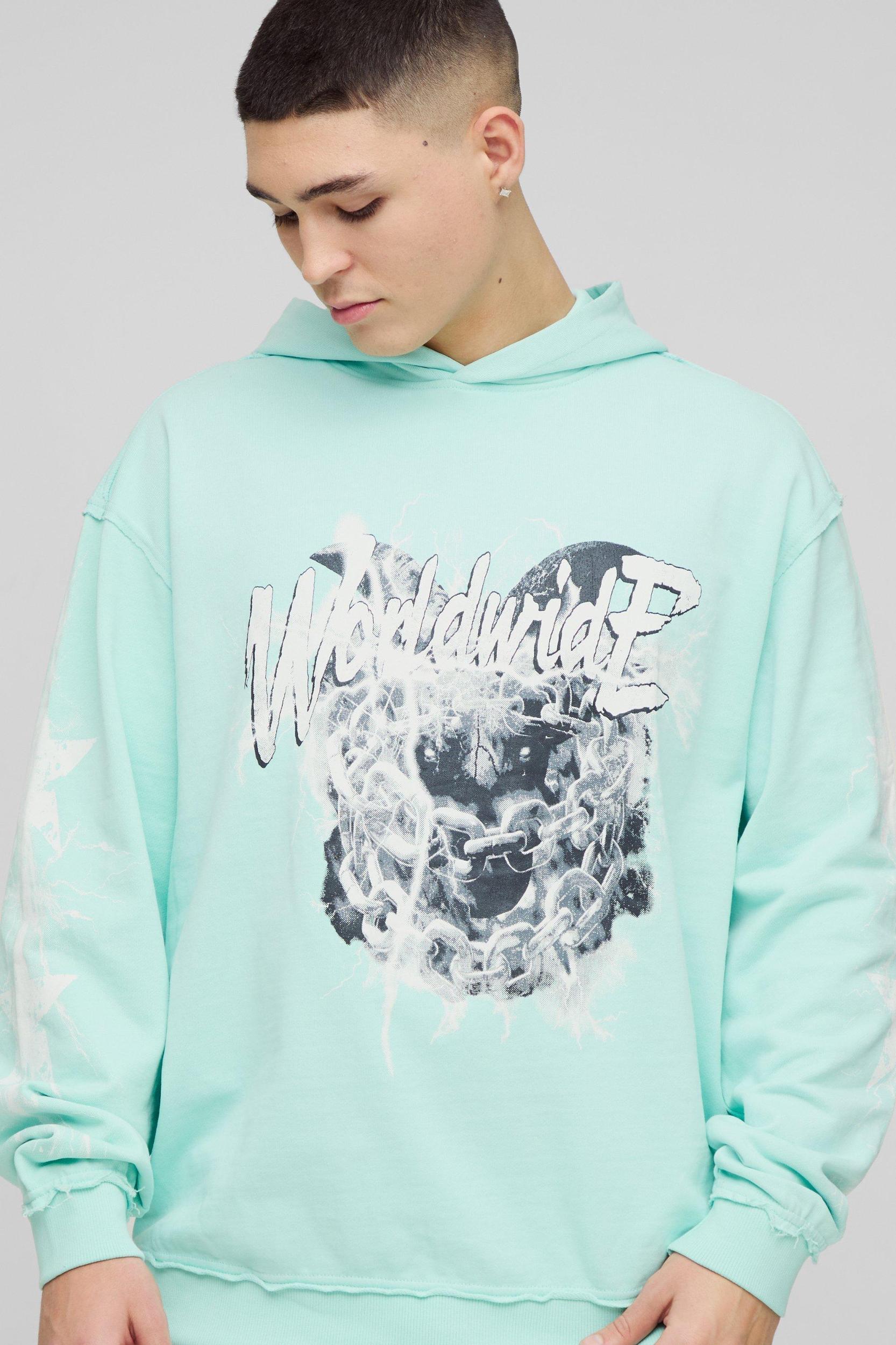 Oversized Loopback Raw Seams Worldwide Printed Hoodie | boohooMAN USA