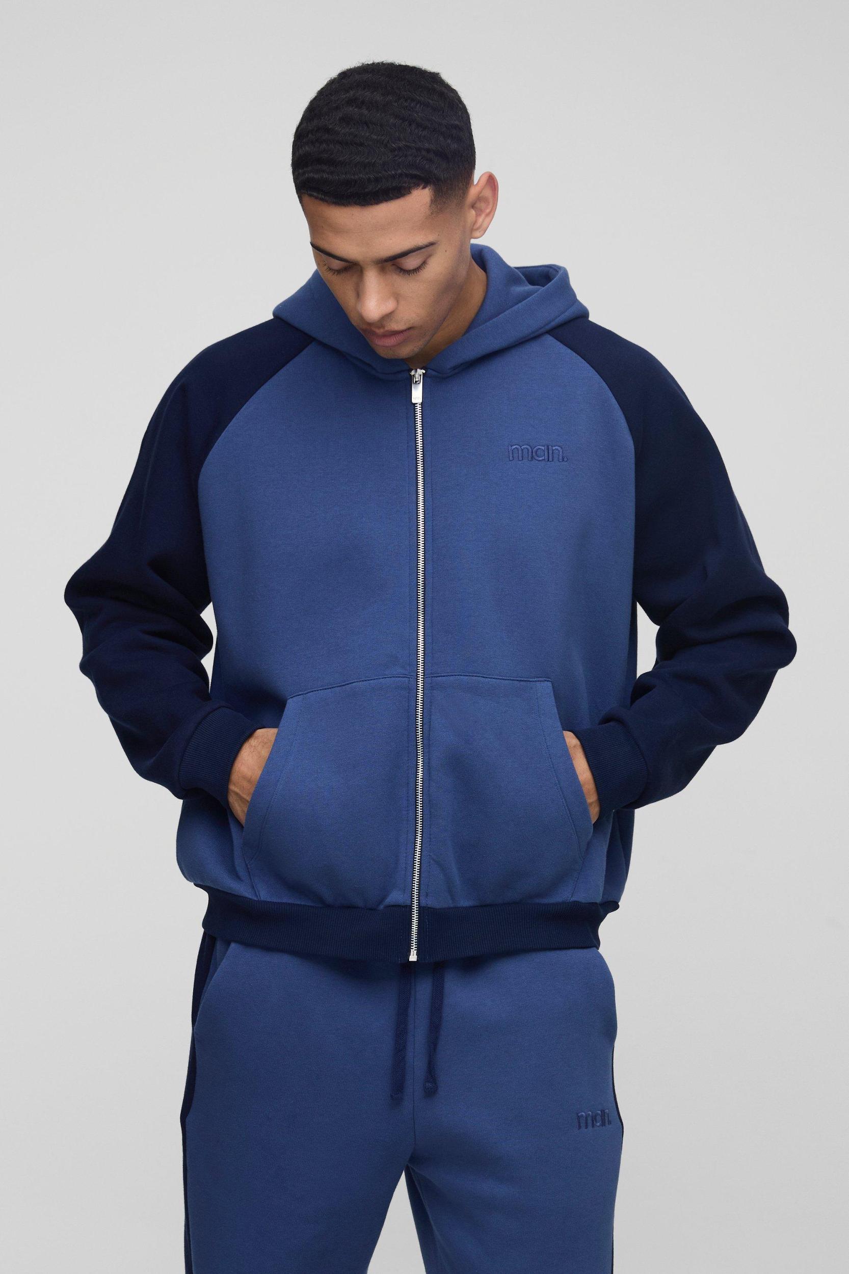 Oversized Man Colour Block Zip Hooded Tracksuit | boohooMAN USA