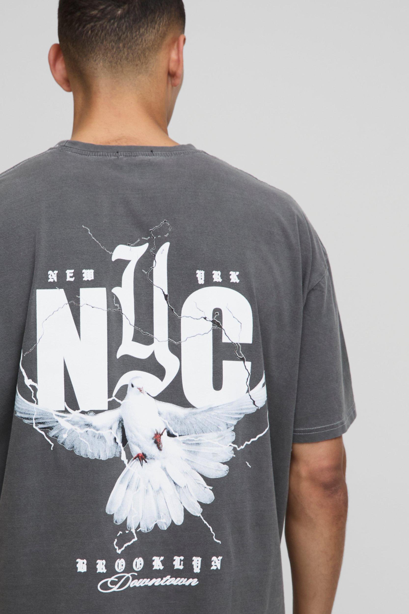 Oversized NYC Bird Print Washed T-Shirt | boohooMAN USA Product Image