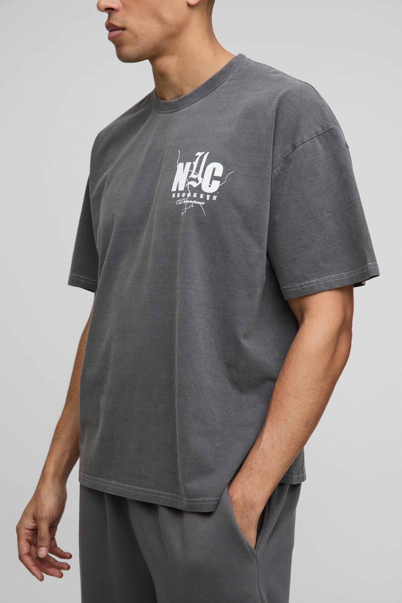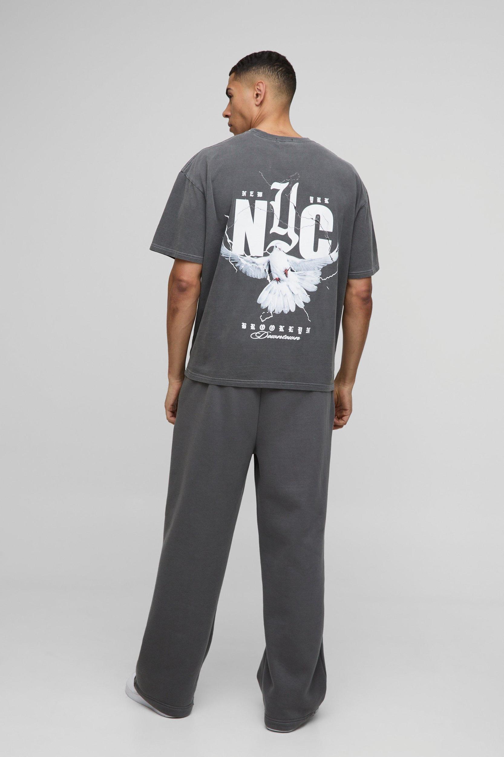 Oversized NYC Bird Print Washed T-Shirt | boohooMAN USA