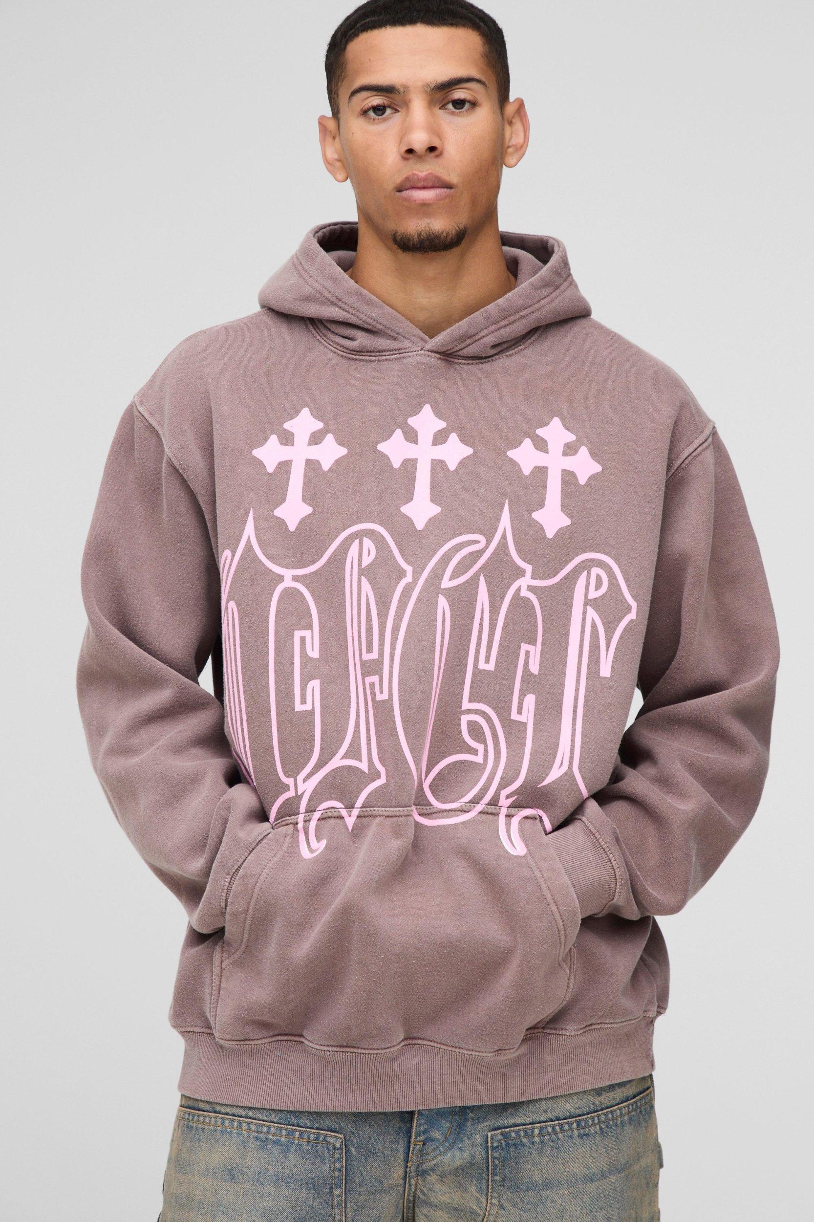 Oversized OFCL Cross Graphic Hoodie | boohooMAN USA