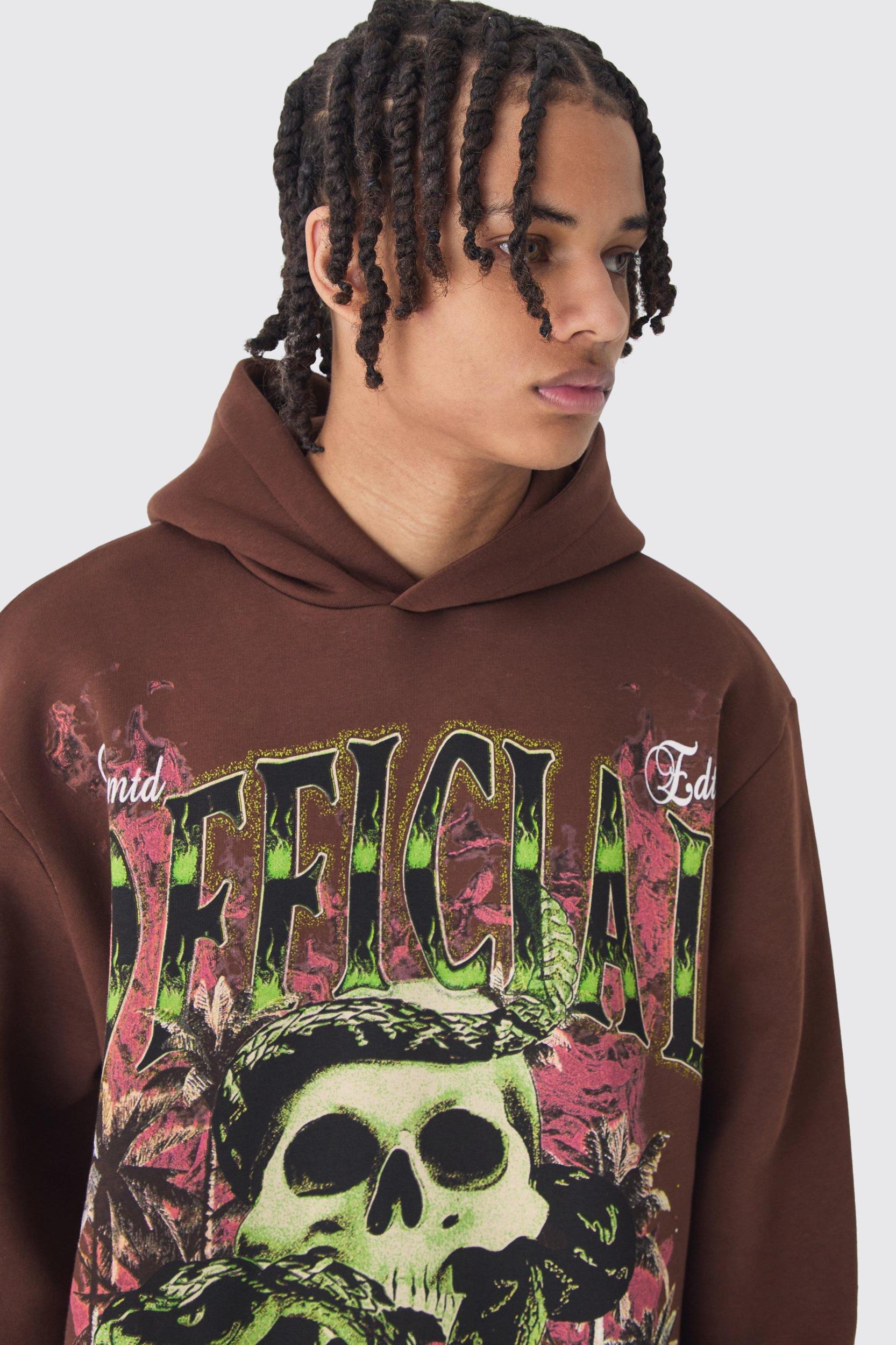 Layer up with an oversized hoodie. Who says you have to choose between style and comfort? With clean lines and plenty of room for extra layers, an oversized hoodie will finish off your 'fit and keep you warm any time of year. Pair a bold print with black cargos and trainers for an effortlessly chill street look, or colour match your hoodie with comfy joggers to hit the gym in style. Mix and match your favourite statement tees with two or three zip up hoodies in block colours and you'll have endless combos to last you all season. changeStyle: Printed HoodieDesign: Gothic/RenaissanceFabric: BrushbackLength: RegularNeckline: HoodedSleeve Length: Long Sleeve