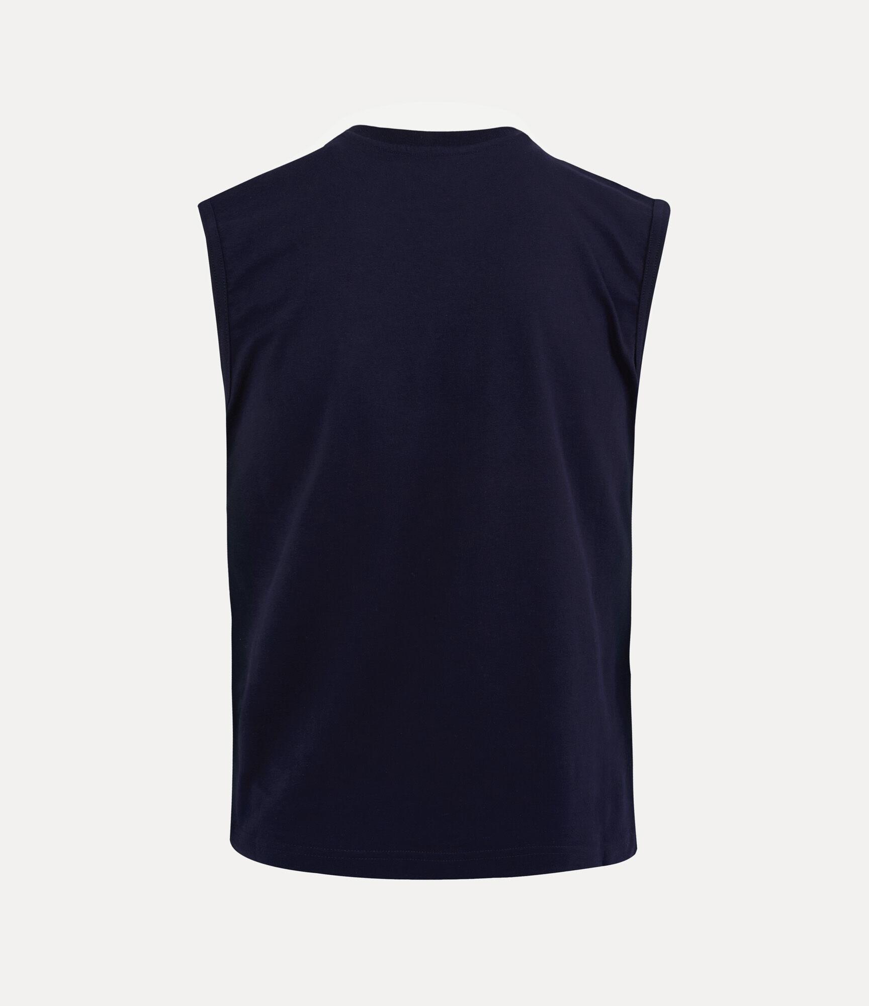 Our Oversized Orb Muscle vest is crafted from lightweight organic cotton and shaped with a classic crew neckline framed by ribbed trims. Falling into a straight hem, the piece is finished with an enlarged multi-coloured orb motif printed across the chest, capturing Vivienne’s vision of taking tradition into the future.