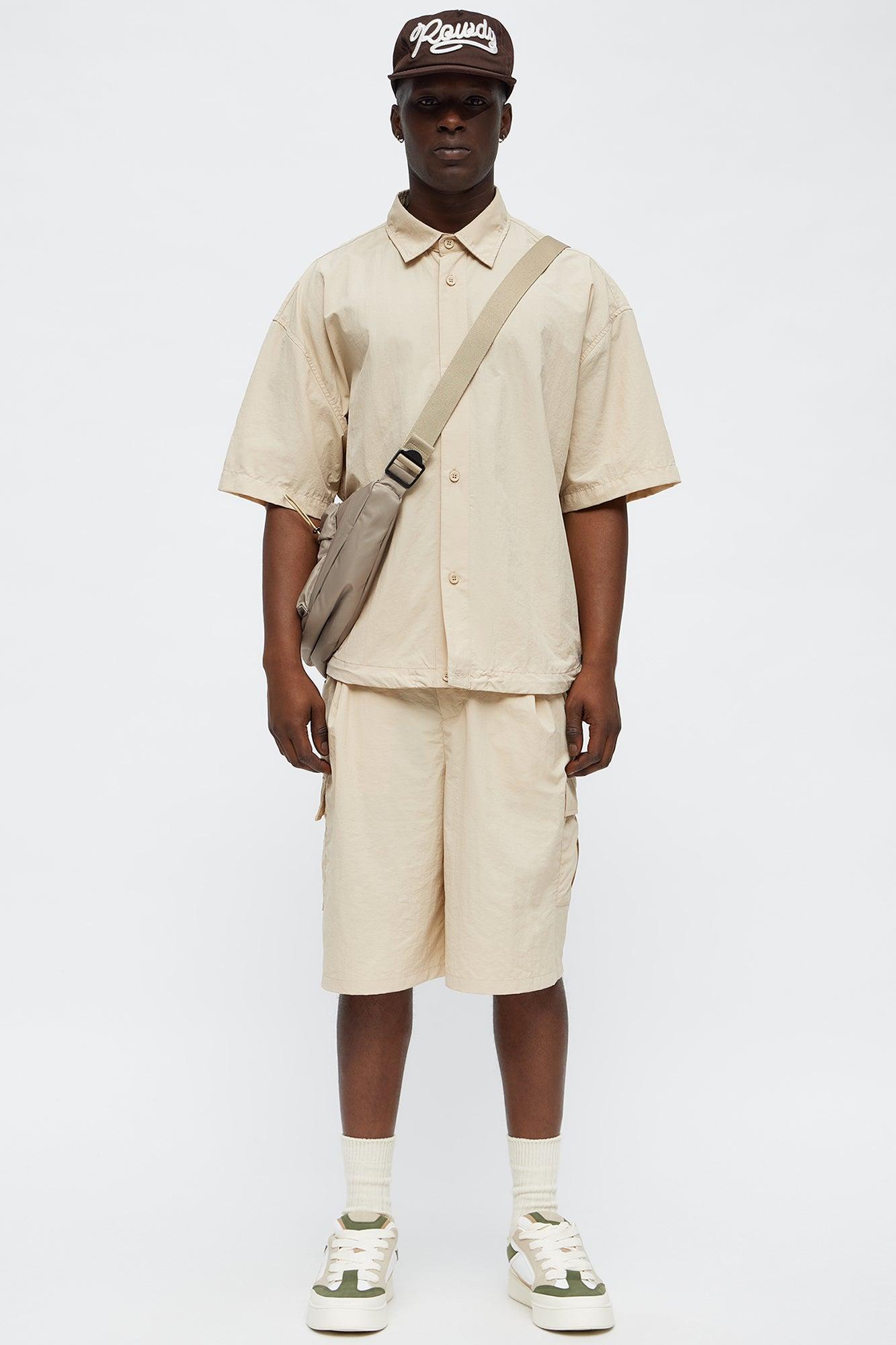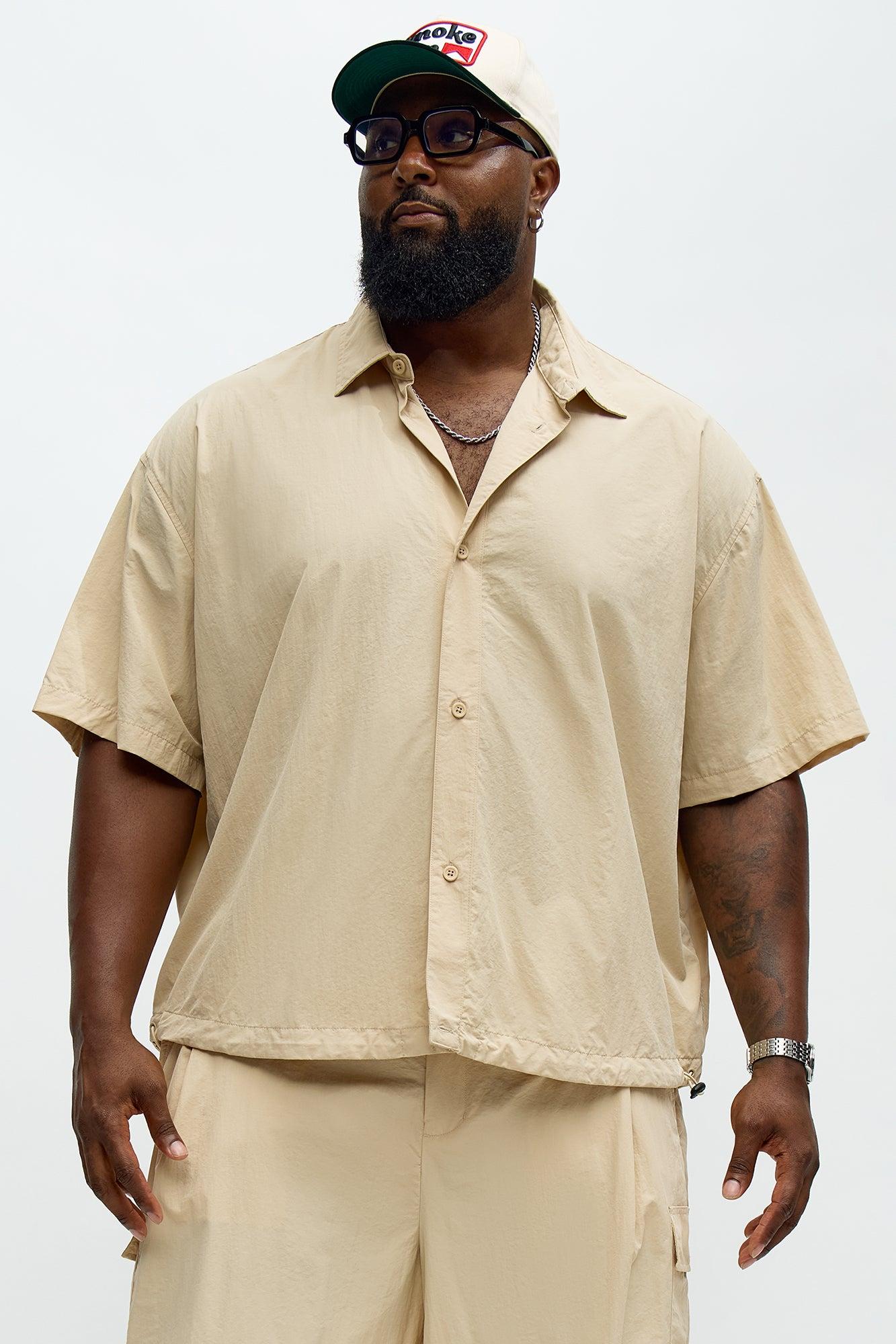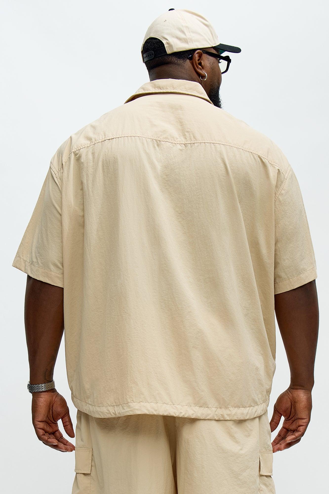 Oversized Philip Nylon Button Up Shirt - Beige Male