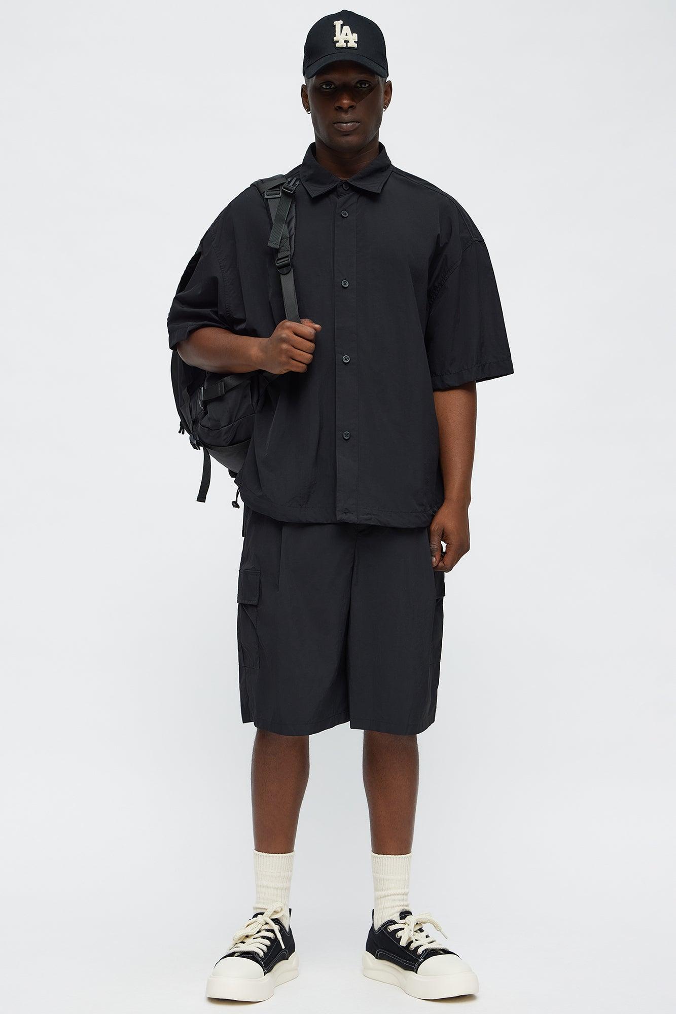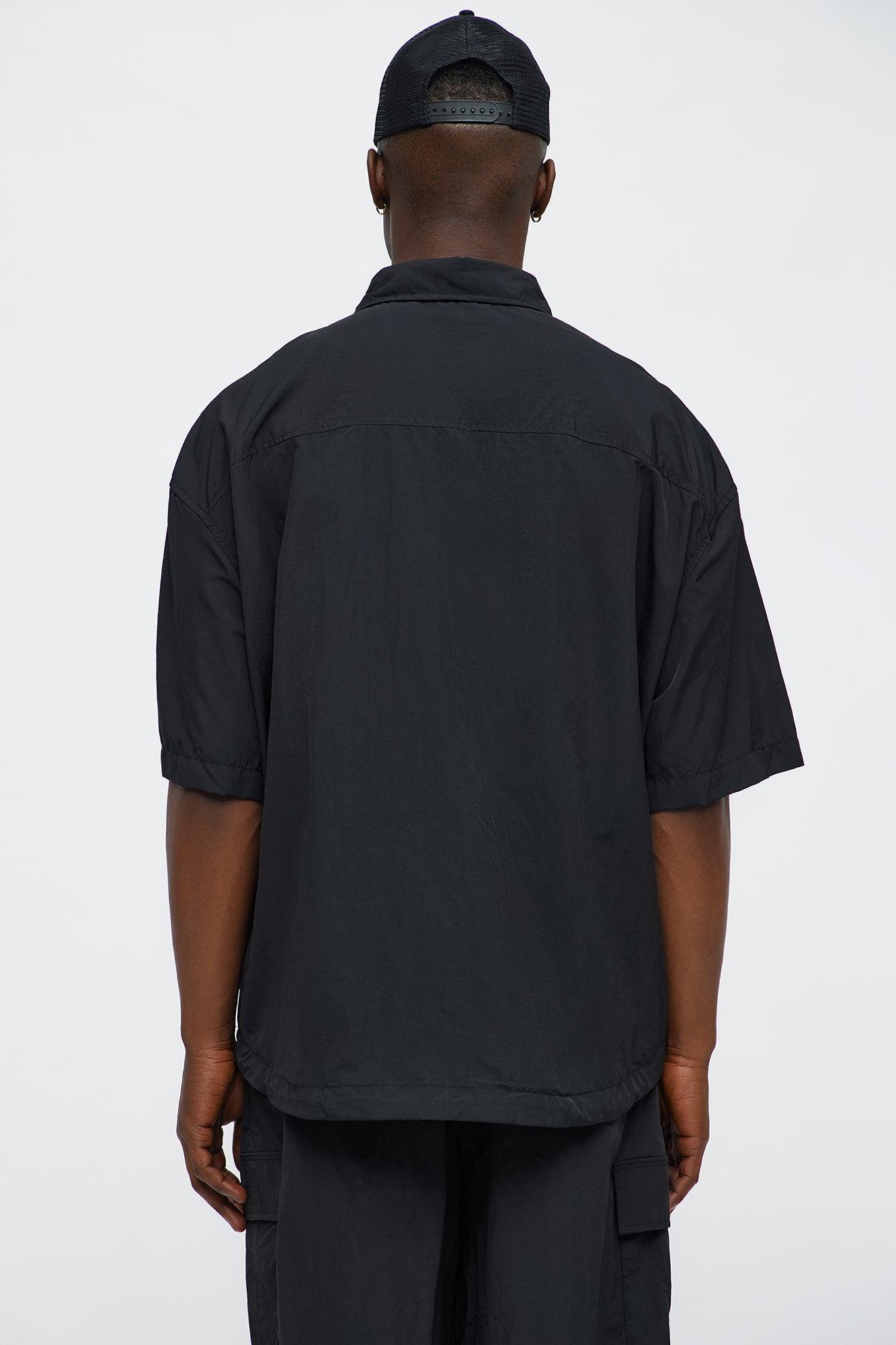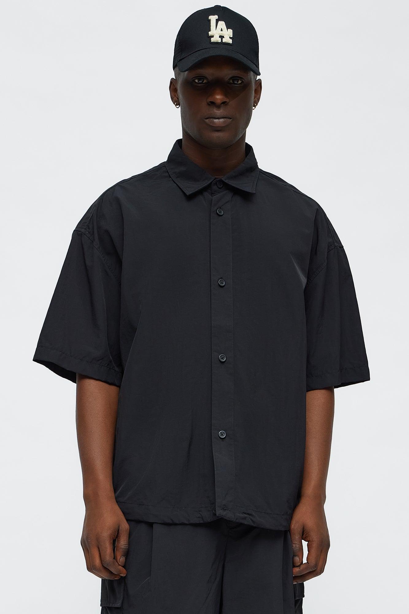 Oversized Philip Nylon Button Up Shirt - Black