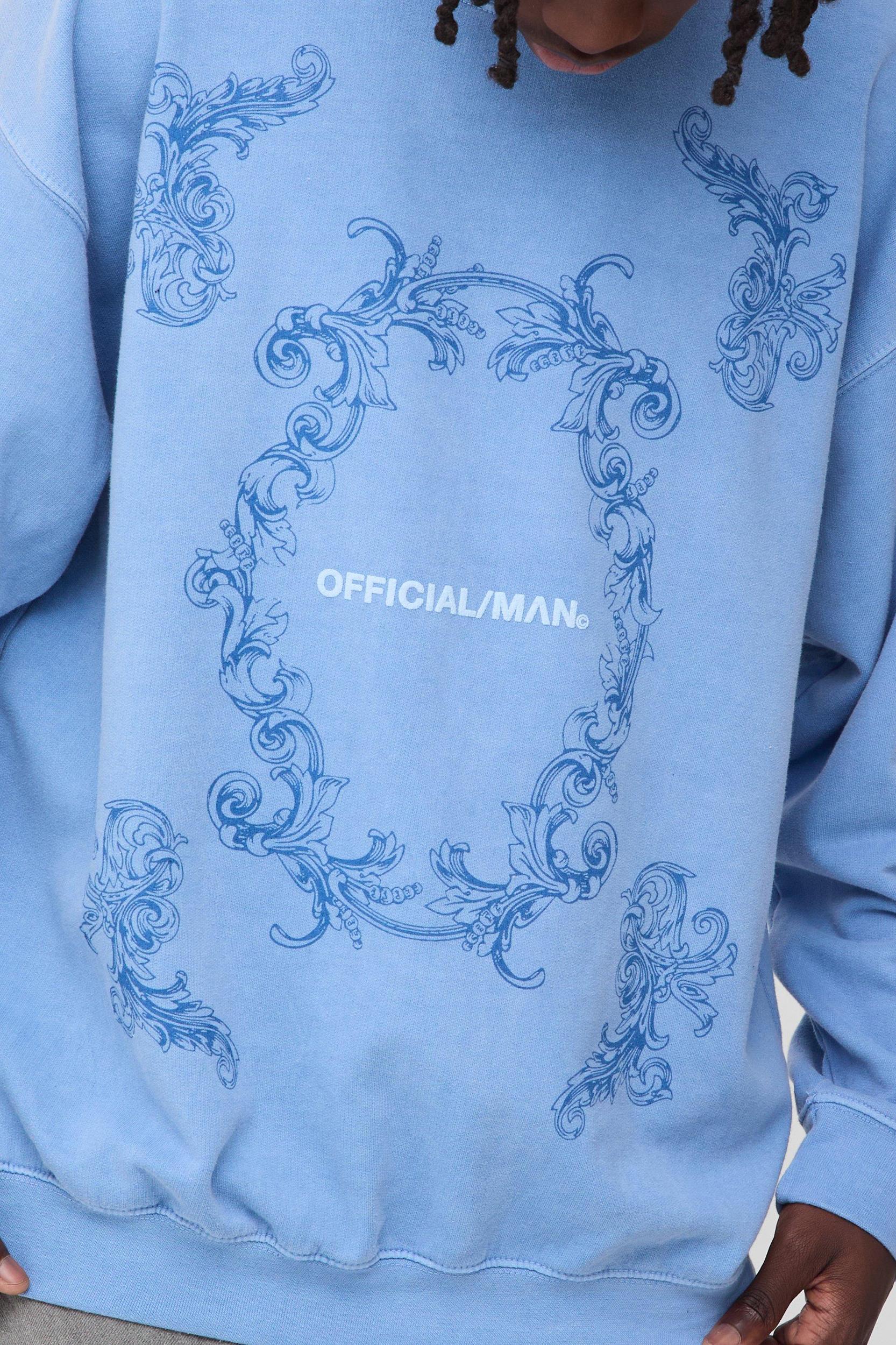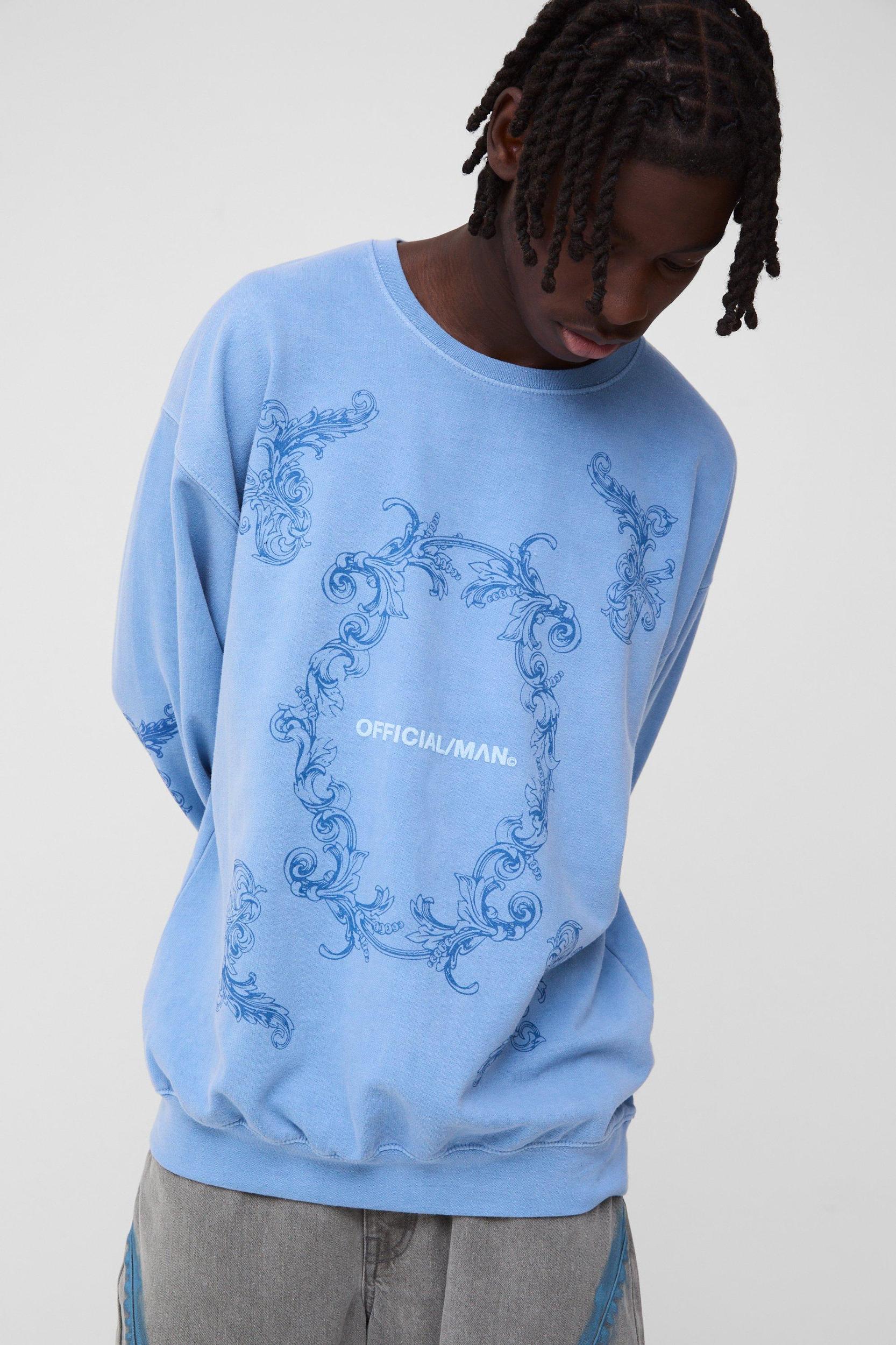 Mens Blue Oversized Puff Print Official Graphic Washed Sweatshirt - Box your lines and get extra style points with an oversized sweatshirt for day or night. Whether you want to add bulk or hide it, an oversized sweatshirt is the perfect top layer to work with jeans, shorts and tracksuit bottoms. This loose fit cut gives a classic line while allowing room to move, adding a laid-back but sophisticated vibe to any street or gym fit. Try colour matching a short-sleeved sweatshirt with sweatpants for a chilled daytime look, or go for black and white contrasting prints with jeans or cargo pants for an evening hanging with the crew. Choose a few different collar, zip, or pocket combos, so youll always have a perfect top layer no matter where youre headed.