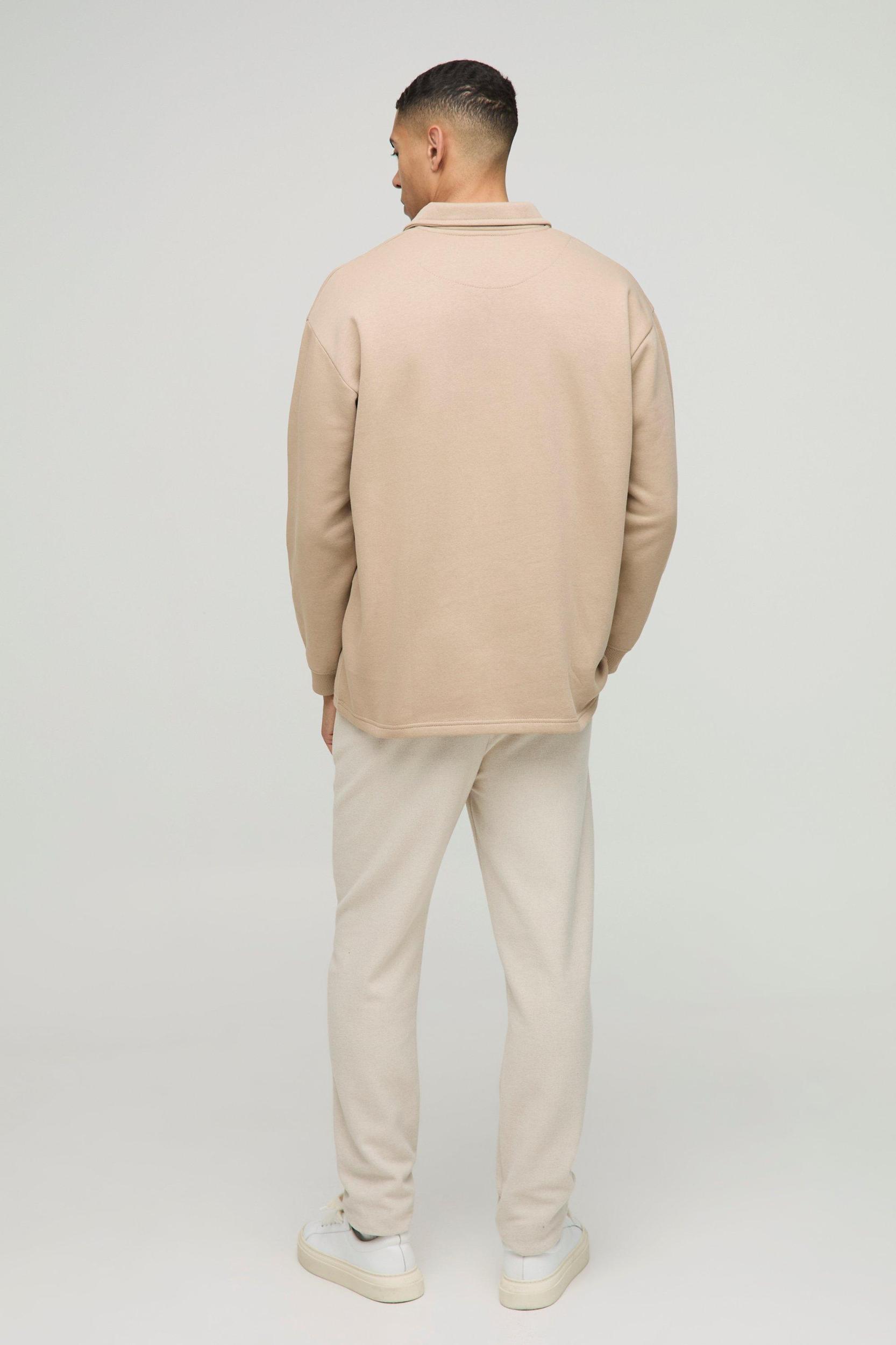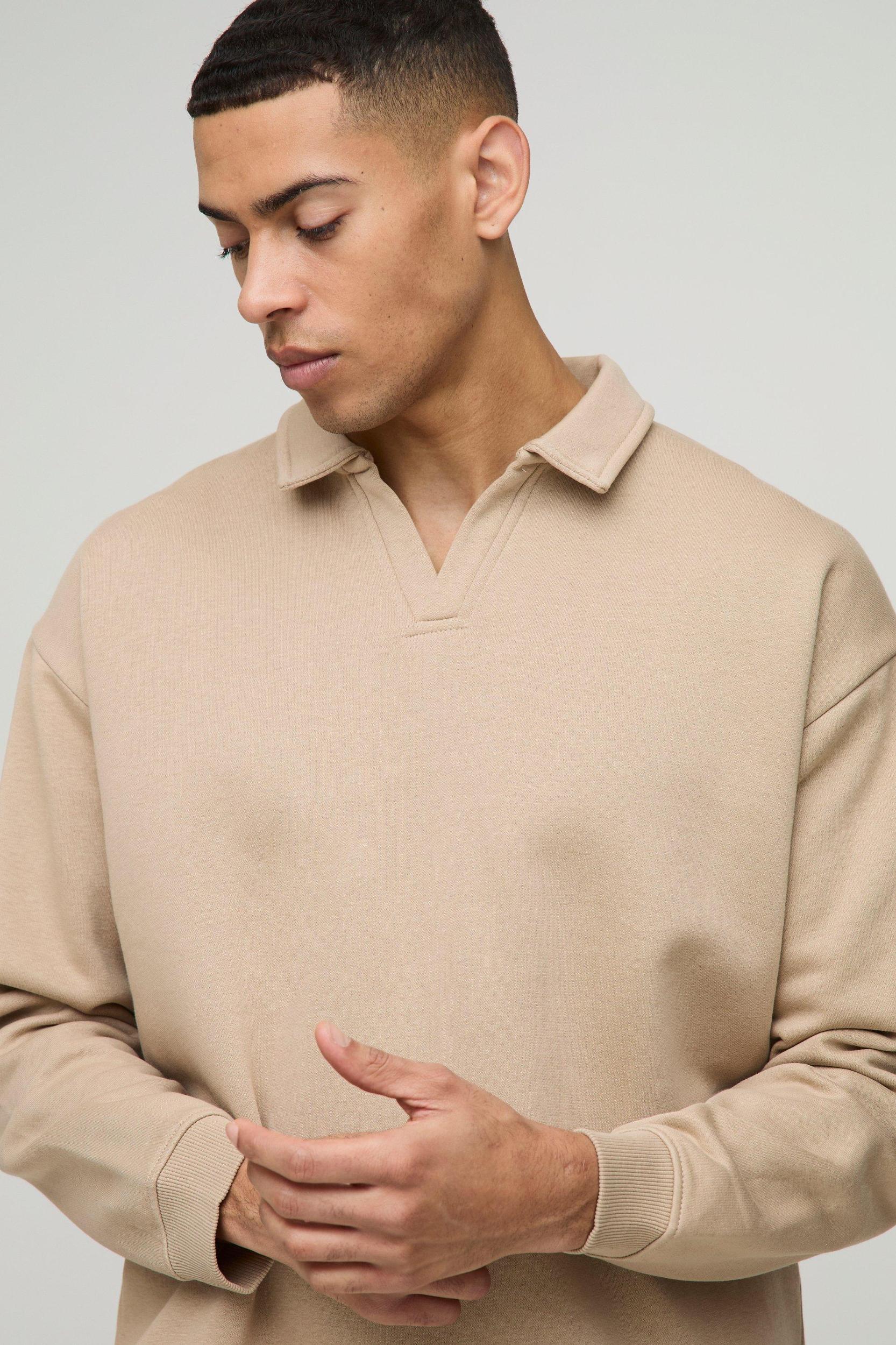 A go-to top layer for every day of the week. Need a wardrobe staple that's versatile and reliable? A basic sweatshirt is the ultimate easy layer for warmth, comfort and style. Snuggle up with tracksuit sweatpants for a lazy Sunday in, or level up your casual 'fit by pairing a plain polo with baggy jeans and sneakers, perfect for Saturday afternoon spectating. Or if you're out to impress, try a sleek maroon sweater with pleated pants, dark overcoat and black Chelsea shoes. Whatever your style, with a few plain sweatshirts in different colours you'll always have a stylish top layer ready to go. Style: Plain Polo ShirtDesign: PlainFabric: BrushbackDetail: PlainLength: RegularNeckline: RevereSleeve Length: Long Sleeve